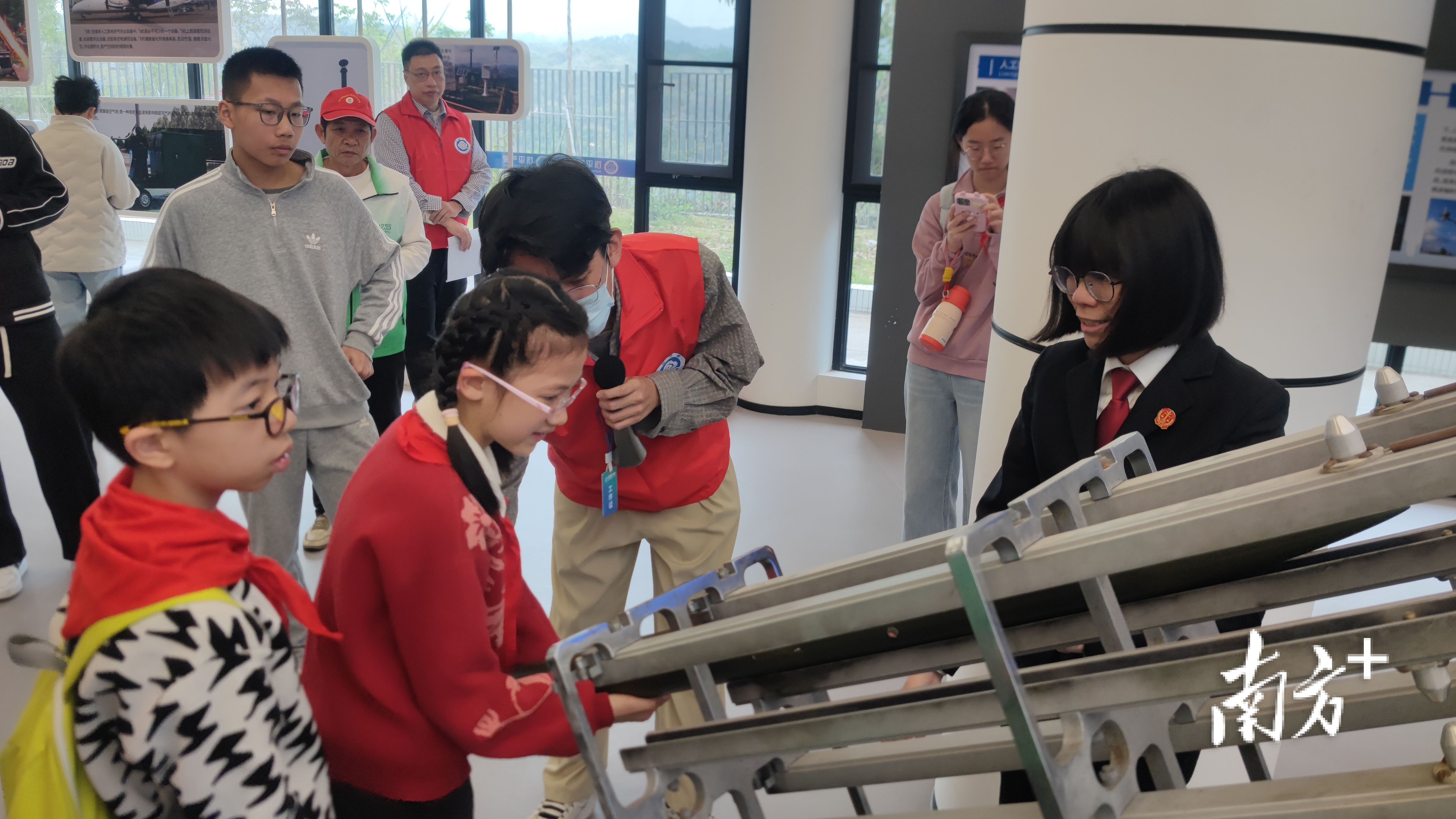 此外,少先队员们走进人工影响天气科普馆,在实践中掌握基础气象知识。工作人员讲解天气预报制作、气候变化规律、气象灾害防范等基础知识,带领大家近距离观摩温度计、湿度计、雨量器等气象观测设备,手把手指导学习风向、降雨量观测方法。
