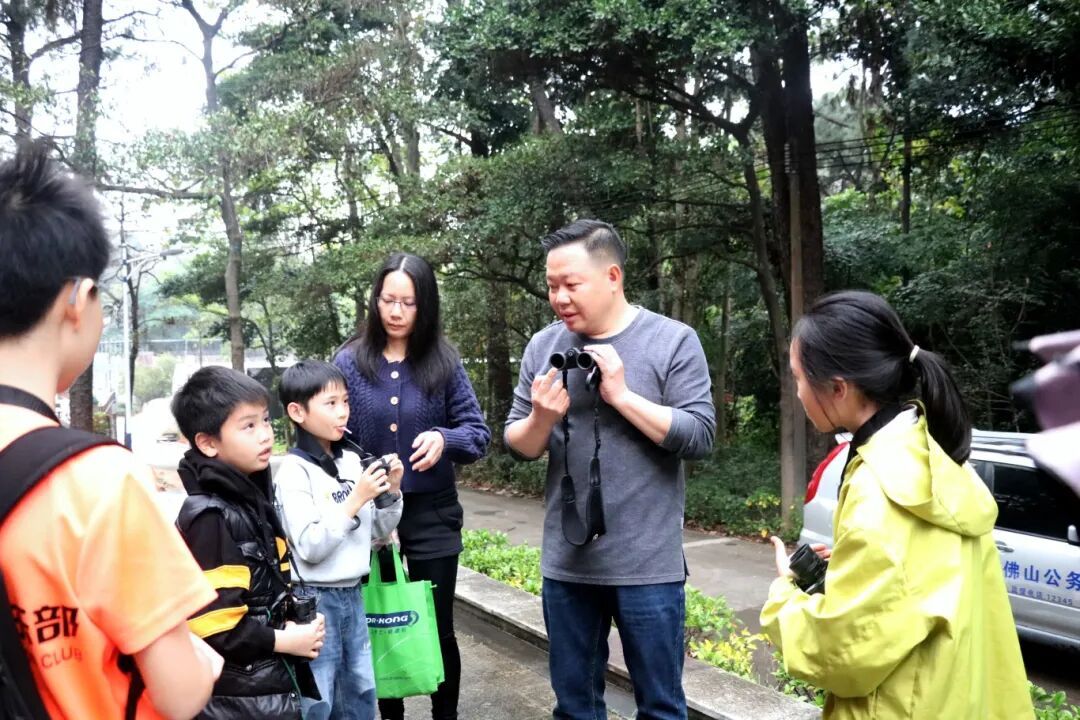 在户外观鸟环节,亲子家庭在专业观鸟老师的指导下,手持望远镜穿梭于佛山植物园林间,追寻飞羽精灵的踪迹。孩子们仔细观察鸟类的形态特征、活动规律,沉浸式感受大自然的奇妙与美好。