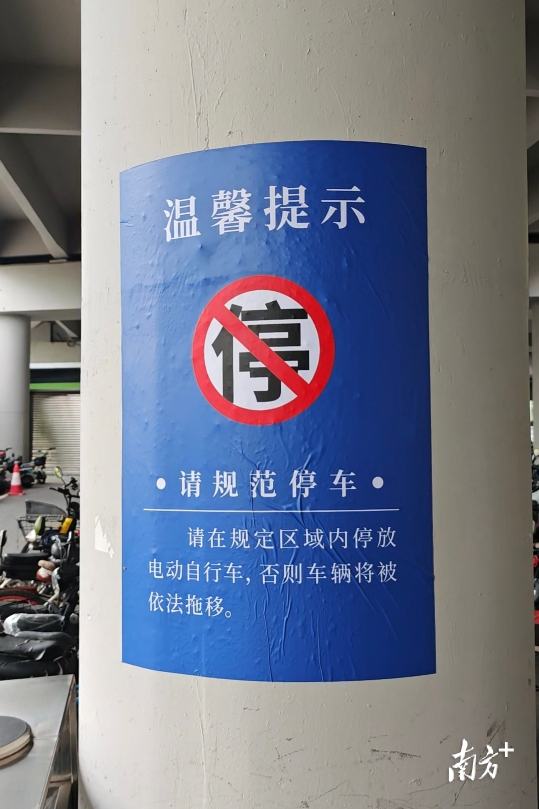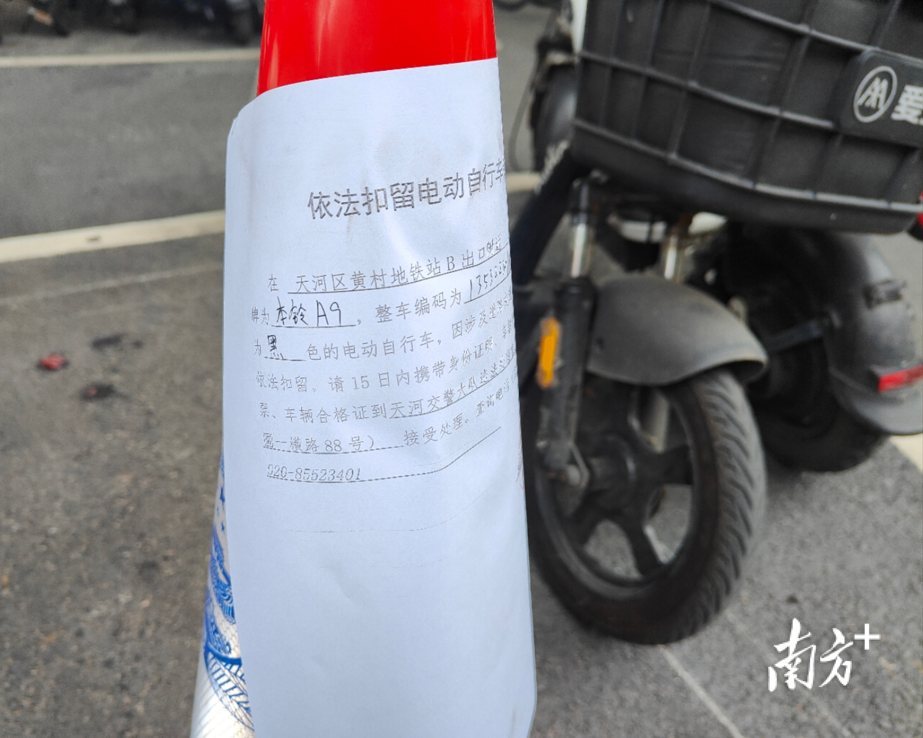每辆被暂扣电动自行车的原停放位置上,都贴有《依法扣留电动自行车告知》。
