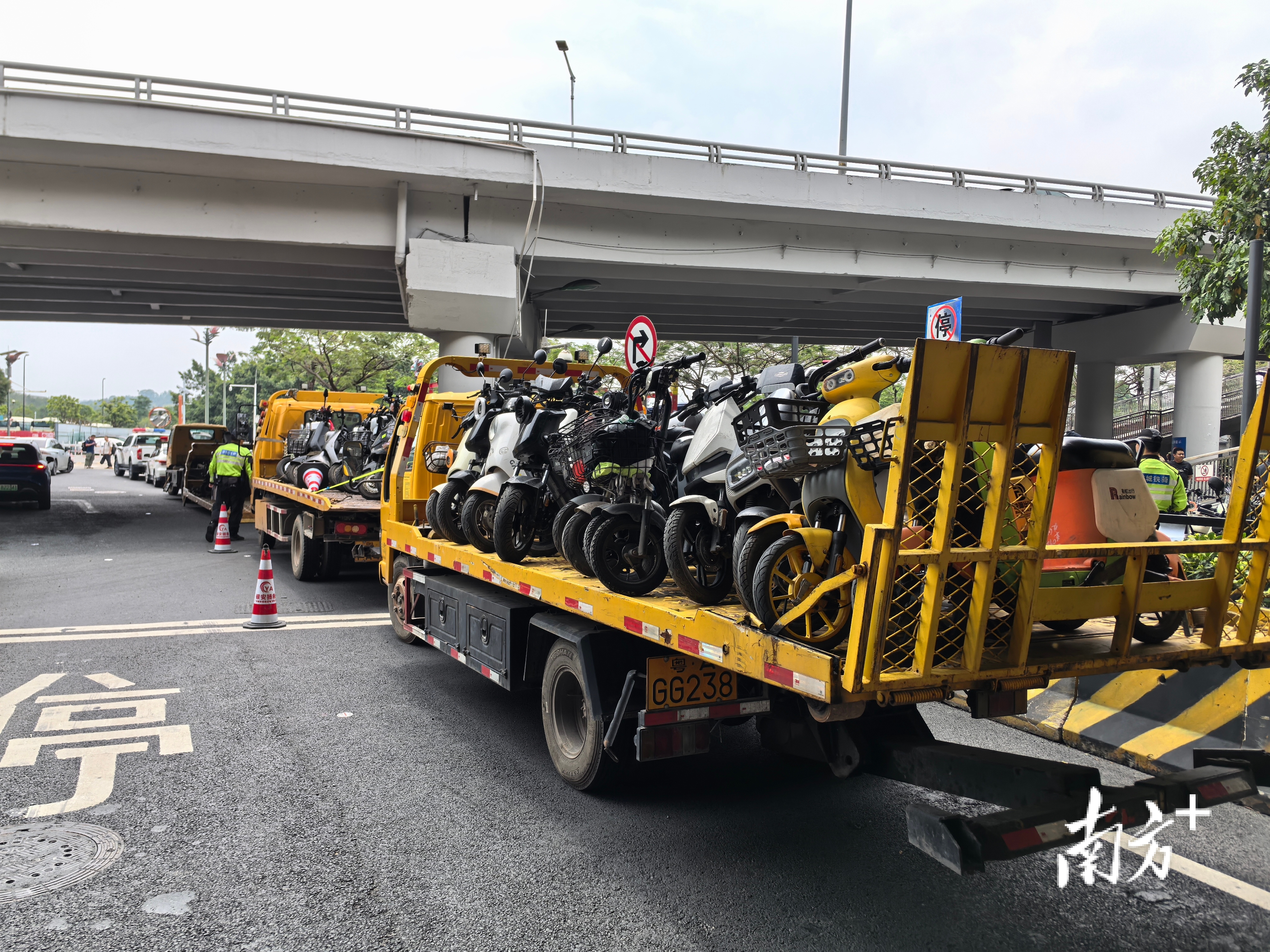 无牌、遮挡号牌、非法改装的电动自行车被拖走。