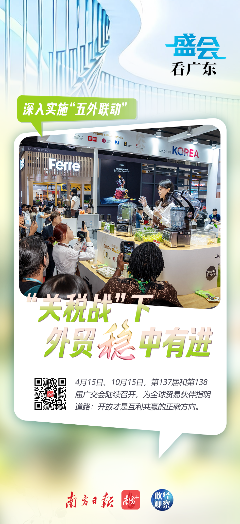 穿越关税风暴,外贸数据印证广东发展稳中有进,充分体现了“挑大梁”的作用,全球客商则用行动对中国投下信任票,彻底打破美国试图用关税壁垒孤立中国的幻想。详情>>
