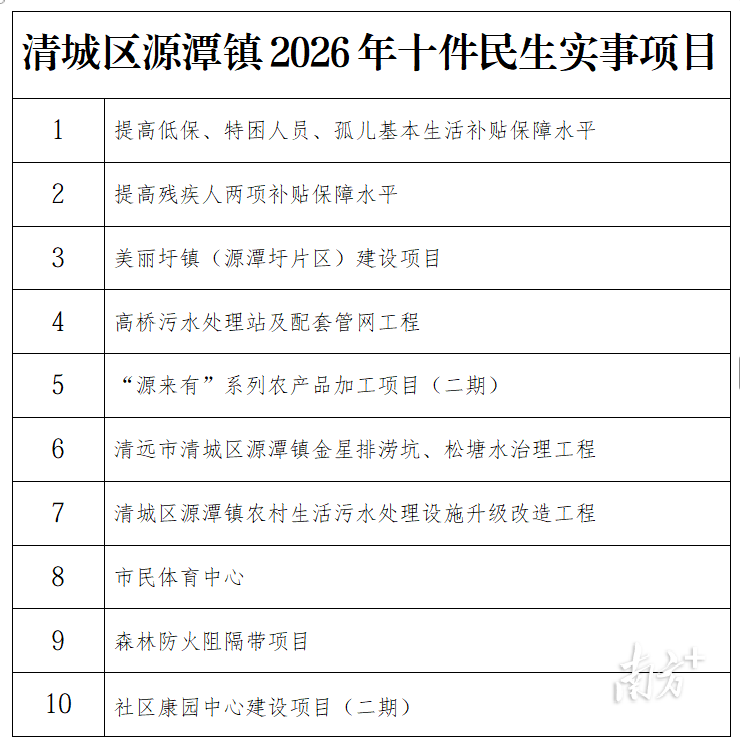 清城区源潭镇2026年十件民生实事项目。