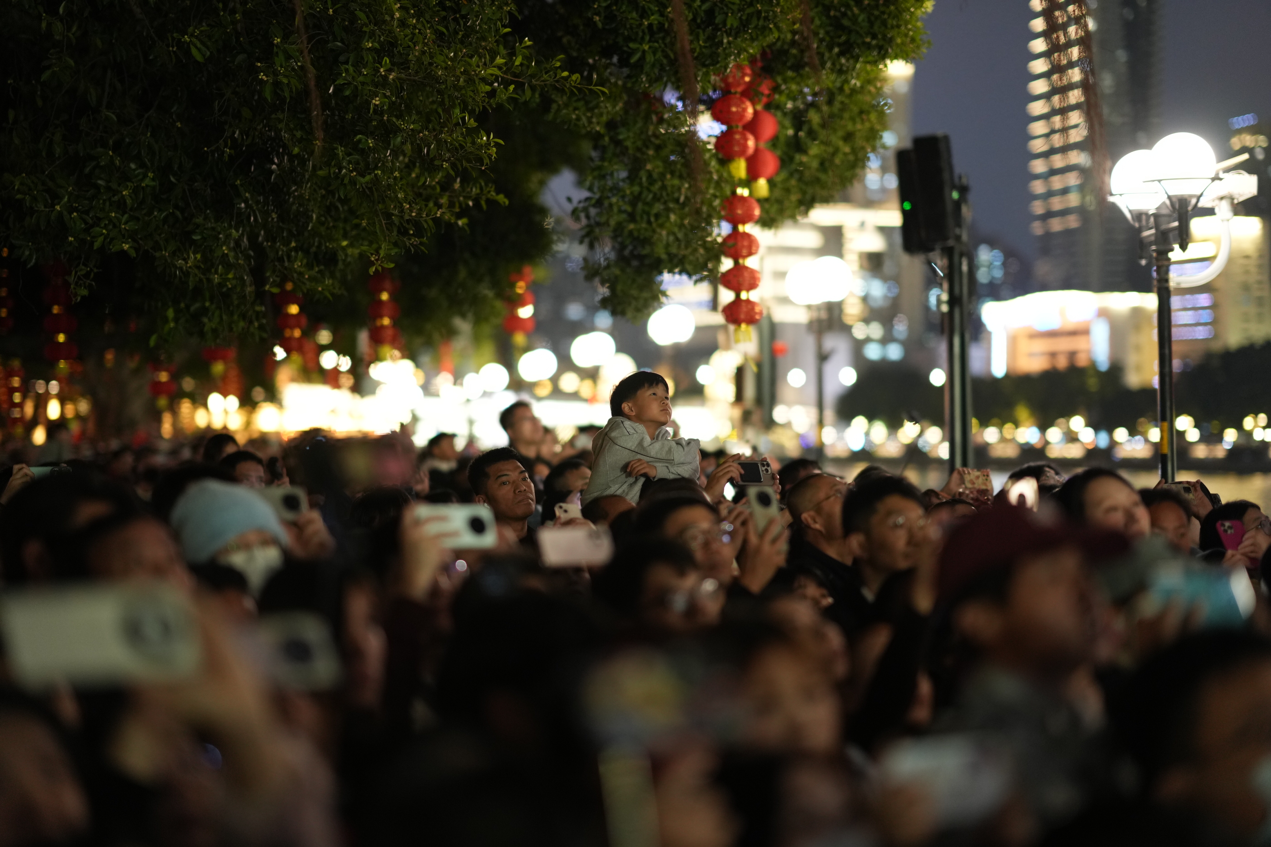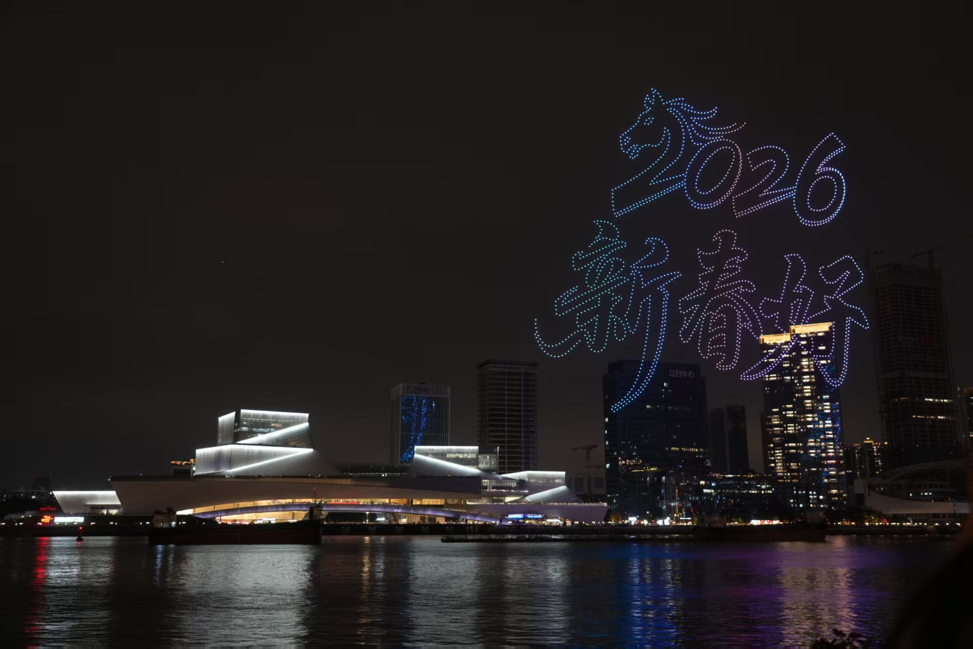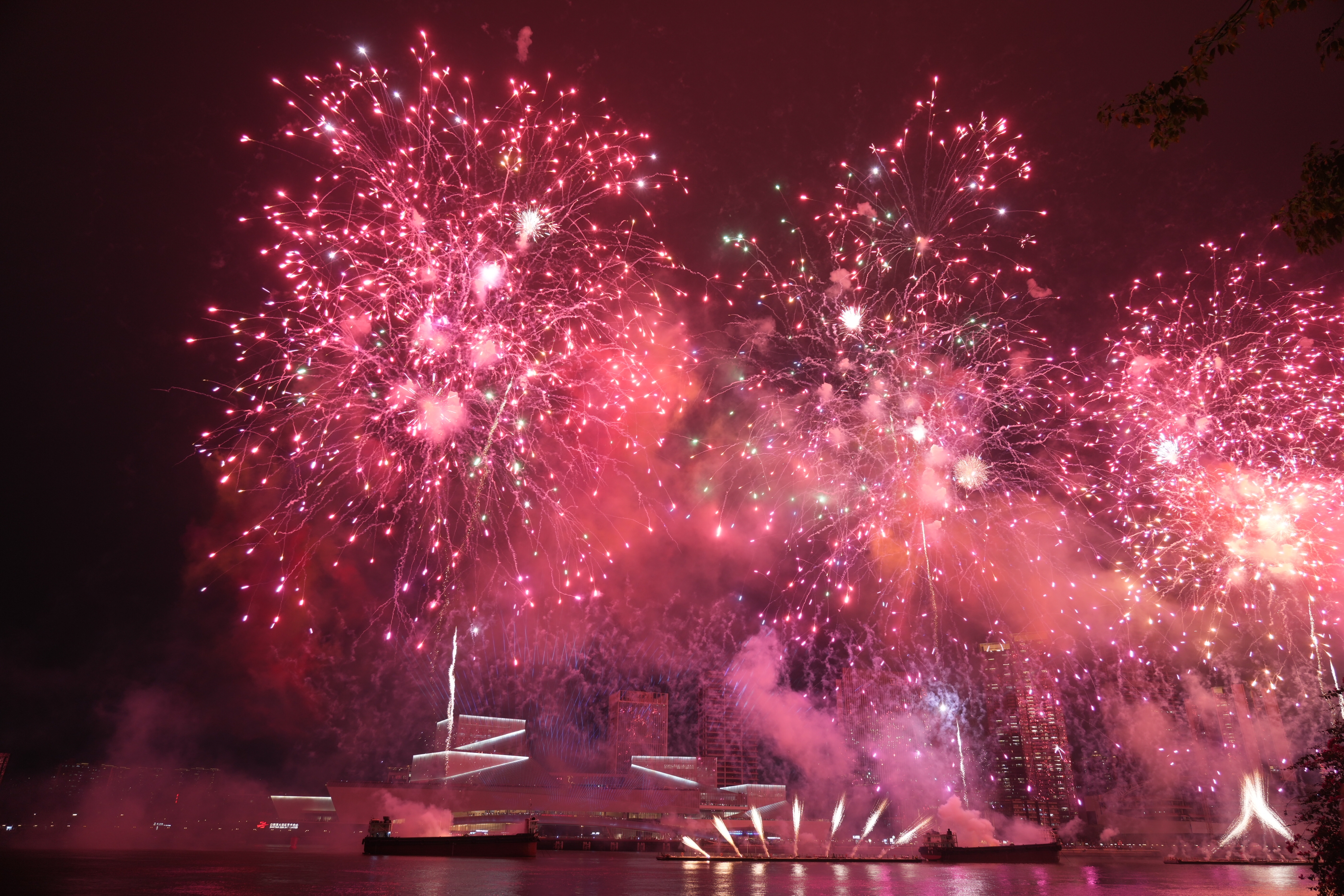 三年的烟花秀照亮了白鹅潭江岸的真实变化:从前黑压压的“背景板”,有了白鹅潭大湾区艺术中心的幕墙光影秀,有了鹤洞大桥全新的灯光效果,又有了聚龙湾太古里江岸的“中国红”春节挂灯,今年,万象城也将亮起楼宇的灯光……白鹅潭的烟花与江岸线的光影交织,有了更丰富的层次和更多样的氛围。