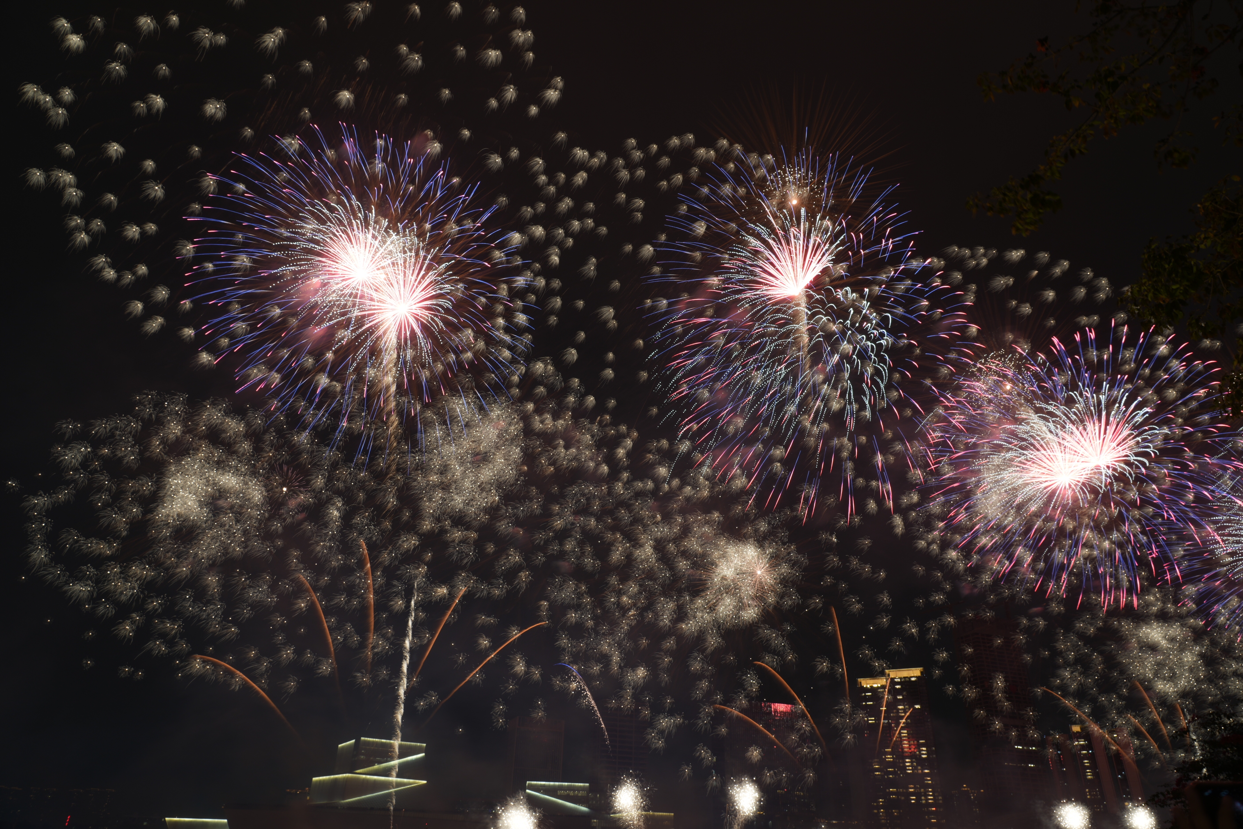 烟花秀则不然。白鹅潭是广州最适合做烟花秀场的地方。中心城区唯一三江交汇的开阔水域,前、后、西三航道的交汇点,沙面岛、沿江路、黄沙等附近区域以低密度的空间为主,更凸显了烟花秀场在天地水之间绽放的震撼华美。