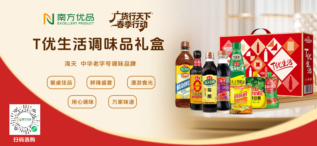 中华老字号“海天”推出“T优生活”调味礼盒,汇集特级酱油、蚝油、料酒等八大经典调味品,0添加酿造,酱香纯正。无论是烹制大餐,还是简单调味,皆能为年夜饭增添一份“家的味道”。