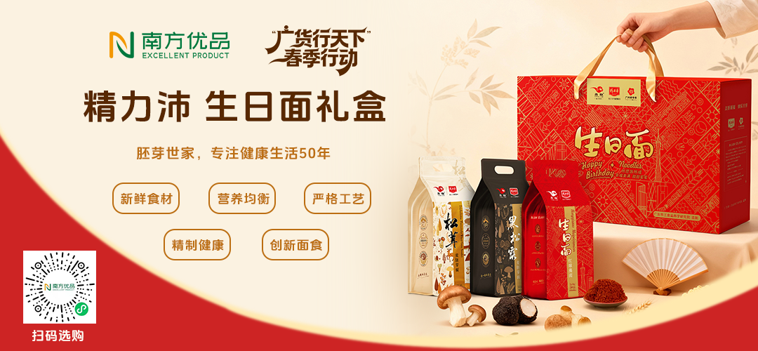 今年,精力沛推出全新生日面礼盒,创新融入黑松露、红球藻、松茸等滋补食材,搭配优质小麦胚芽,采用“先蒸后烘”工艺,打造出三款风味各异、美味健康的胚芽面。清淡鲜美、外调内养,正是“广货”创新的生动写照。