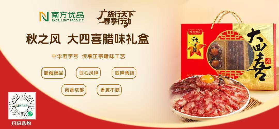 春节将至,“秋之风”推出“大四喜腊味礼盒”,内含两款经典腊肠、一份腊肉与蛋黄盏,甄选肥瘦相间的五花肉,搭配窖藏白酒,创新采用太阳能光棚生晒,中温50℃锁住肉味原香,成就色泽红润、肉香浓郁的广式腊味。礼盒包装融入岭南韵味的窗花纳福设计,于传统中见匠心,在年味里藏新意。