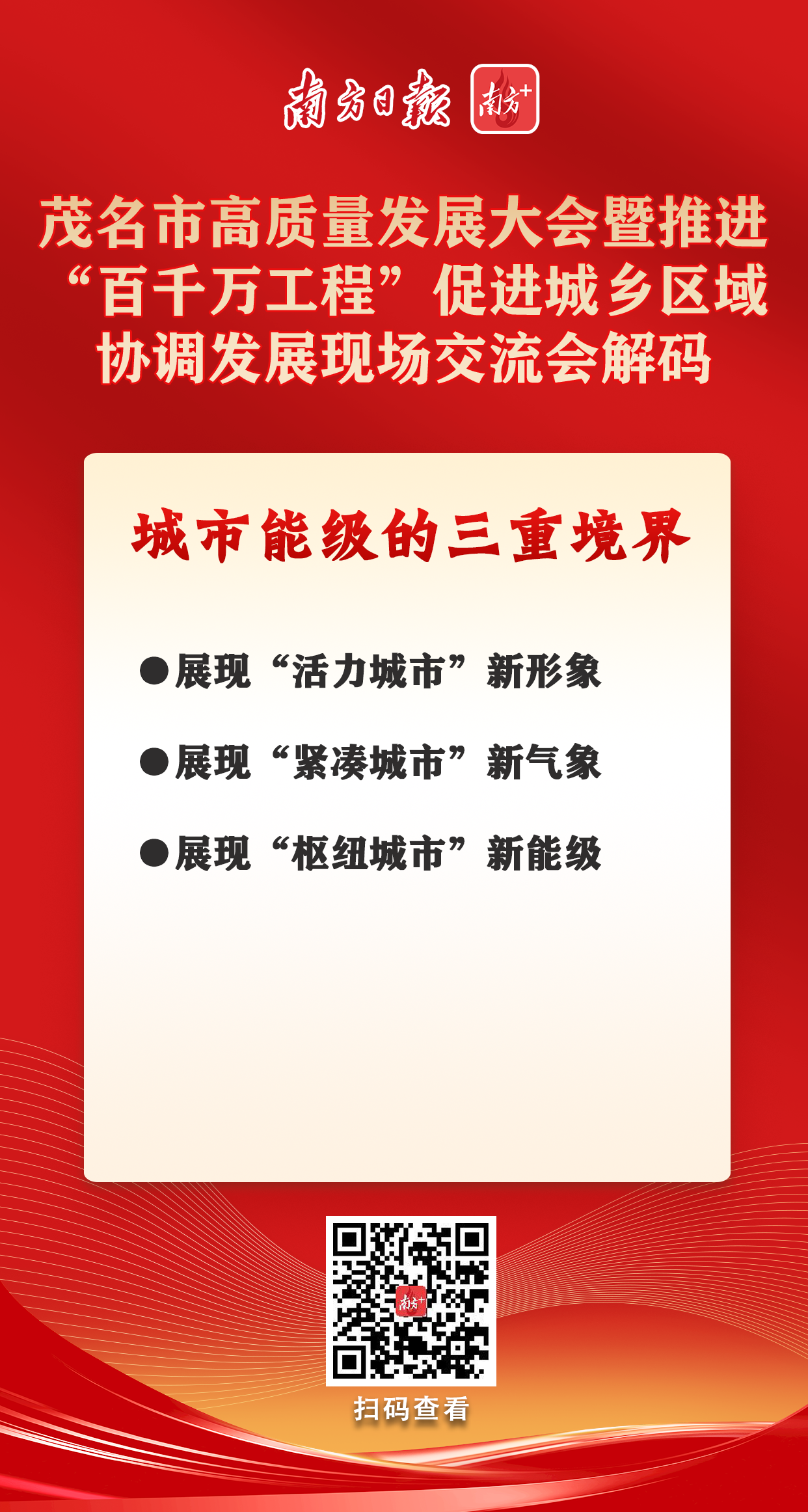 紧凑怎么实现?用快速路打通与高州、化州的“边界感”;电白区、高新区与茂名新城健全融合发展机制;茂南、高州、化州同向发力,以“便捷交通+产业片区”牵引同城化走深走实。信宜城市副中心能级提升,加快形成城市北部特色发展增长极。