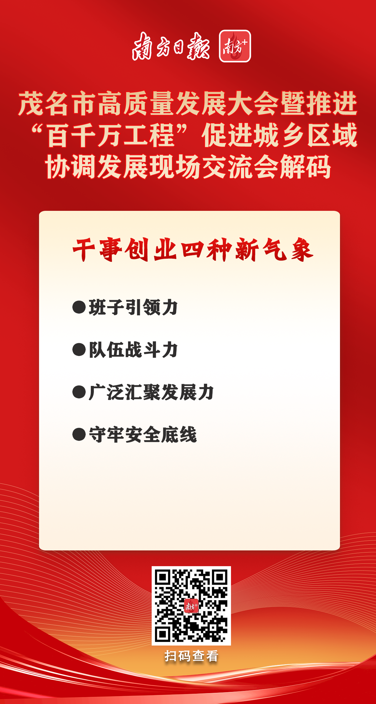 事业成败,关键在人。今年是换届年,茂名明确提出要提振“班子引领力、队伍战斗力、汇聚发展力、守牢安全底线”四种新气象。