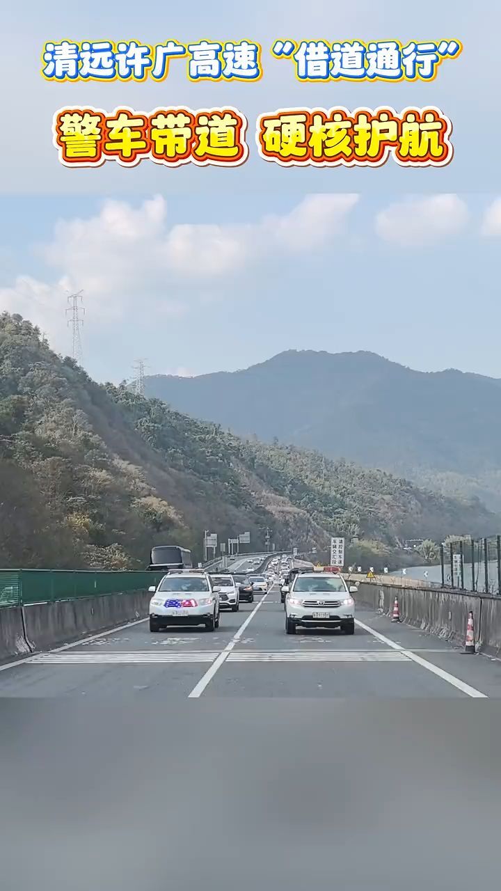2月23日下午,@清远交警 发布视频,视频中,警车带道引导车流,在清远许广高速“借道通行”。交警现场喊话:“我们是清远高速交警,因春运返程车流大,我们正在带路引航,带领大家通过高速公路借道通行路段,请大家控制车速、保持车距,不要随意变道,安全驾驶。”