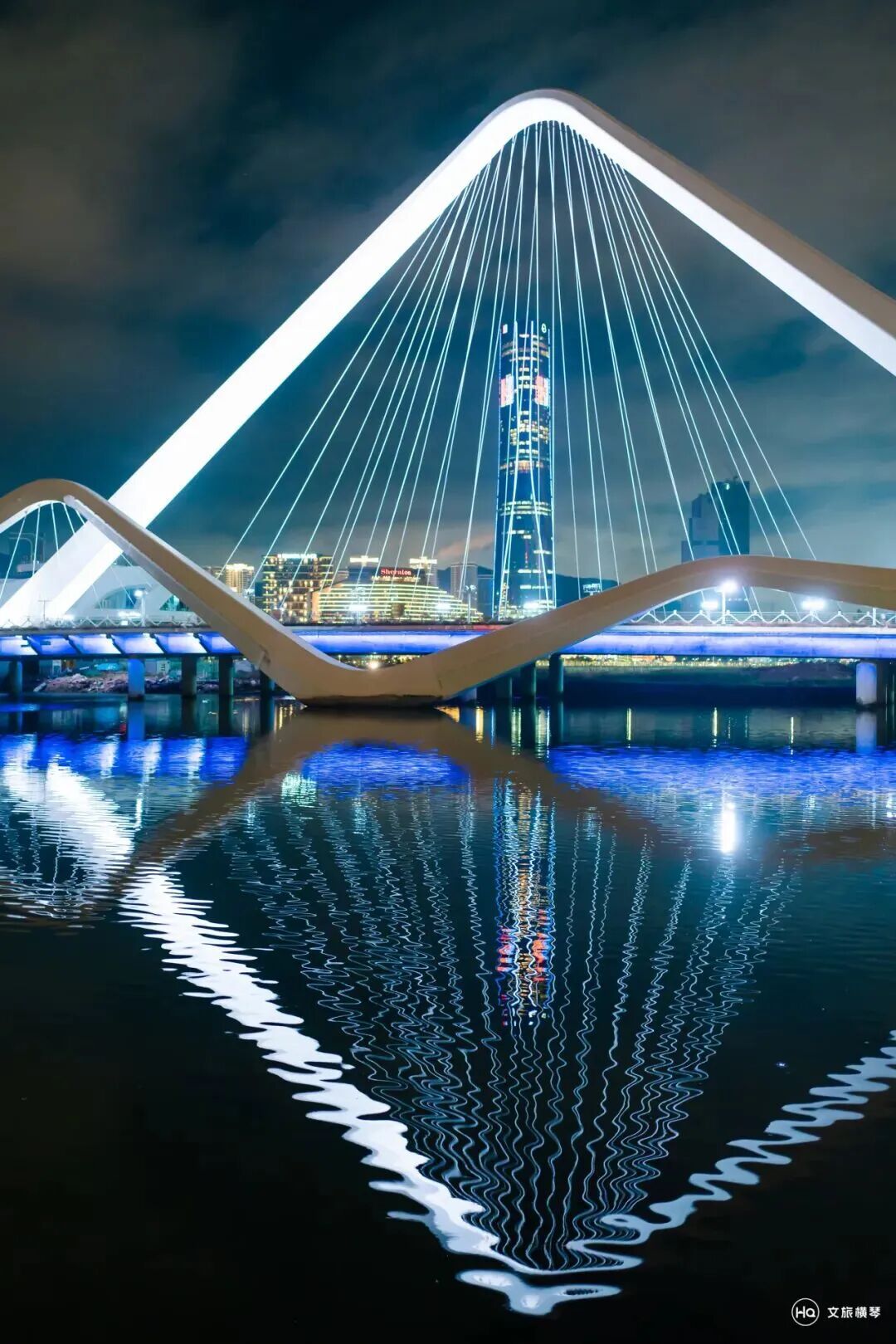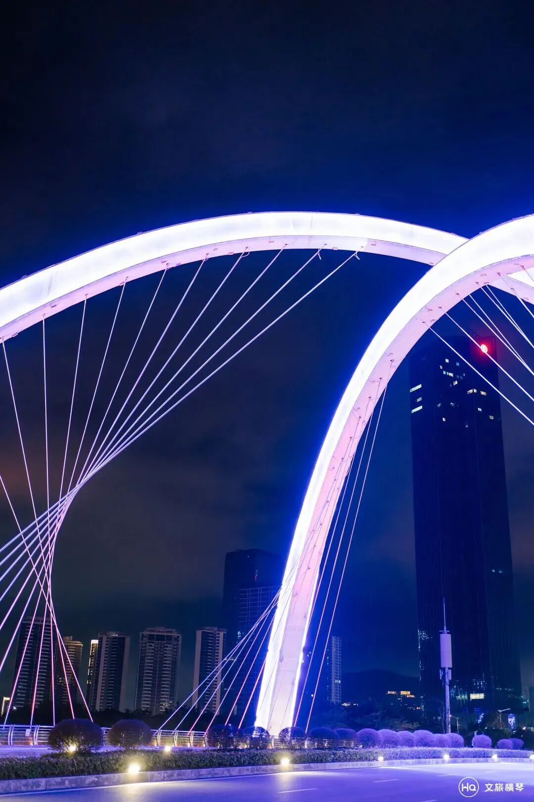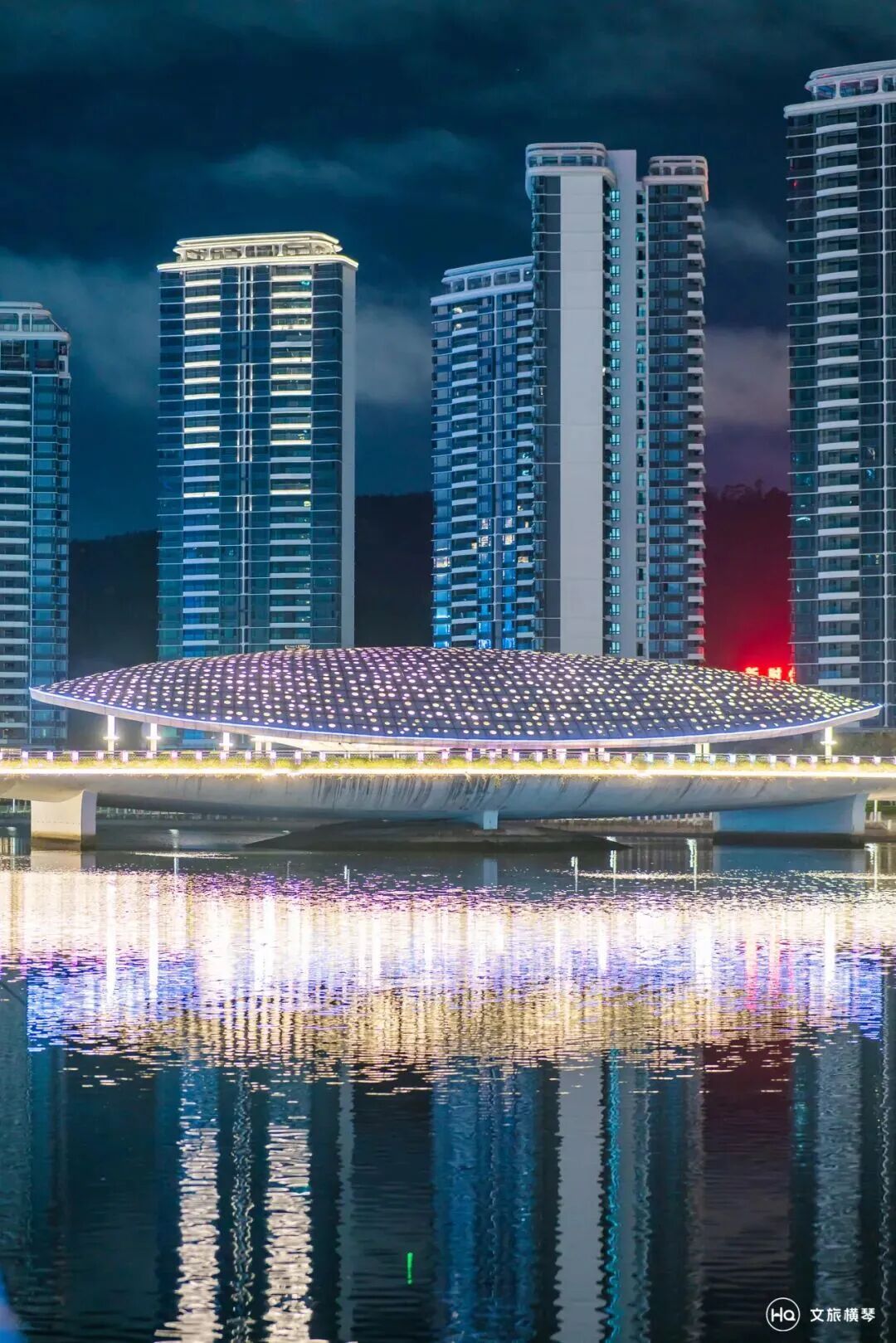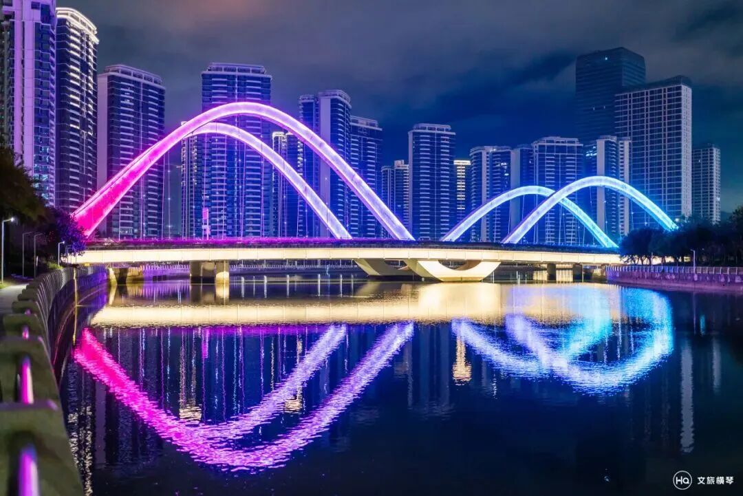 海贝桥独特的贝壳造型,幻彩夺目