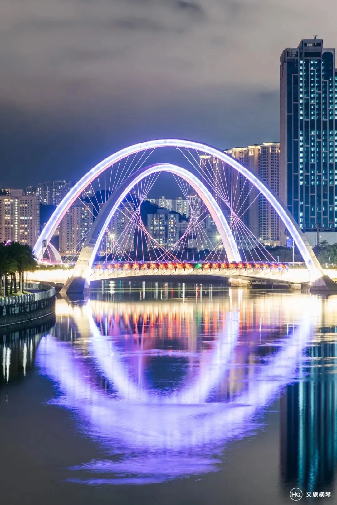 与桥上变幻的霓虹交相辉映