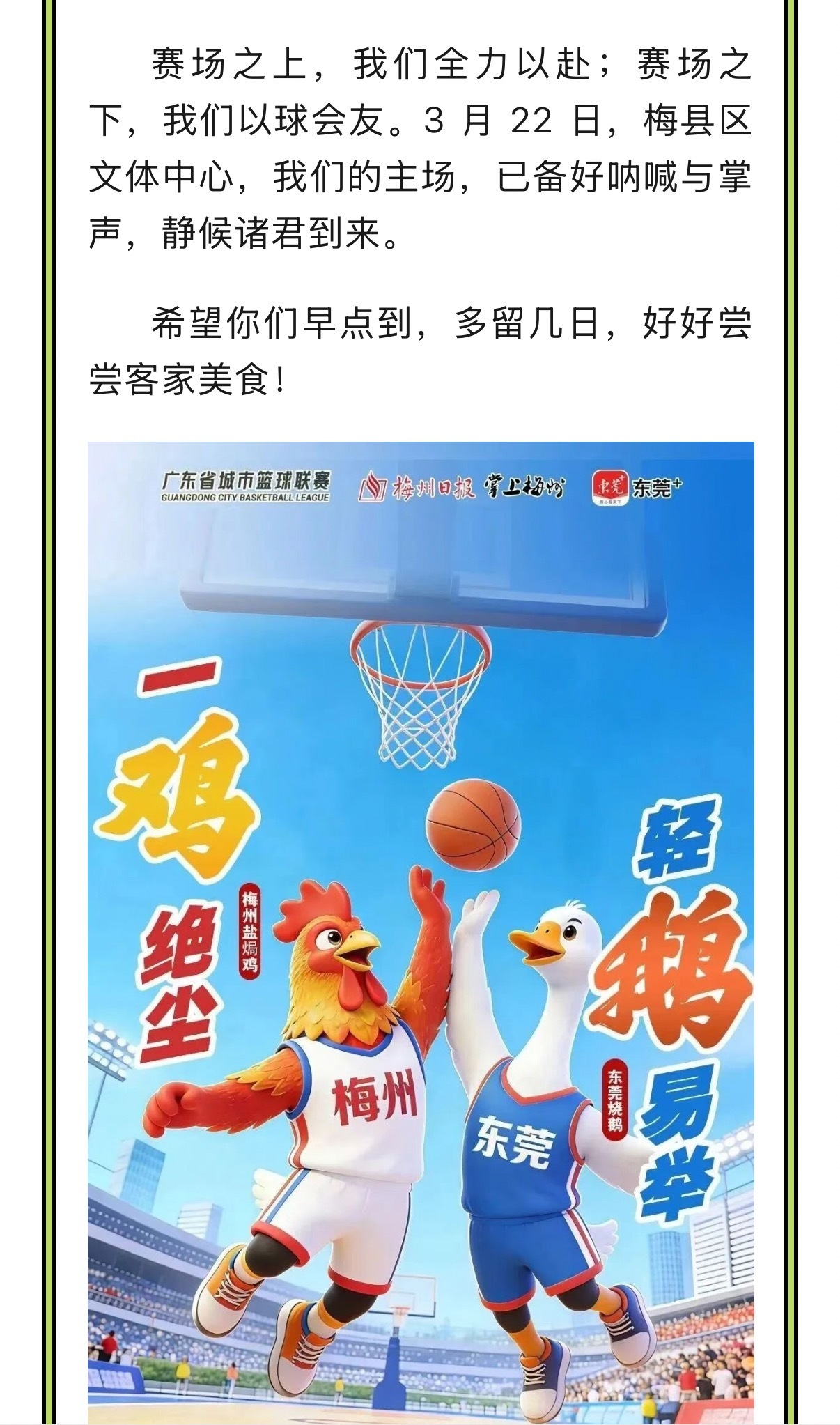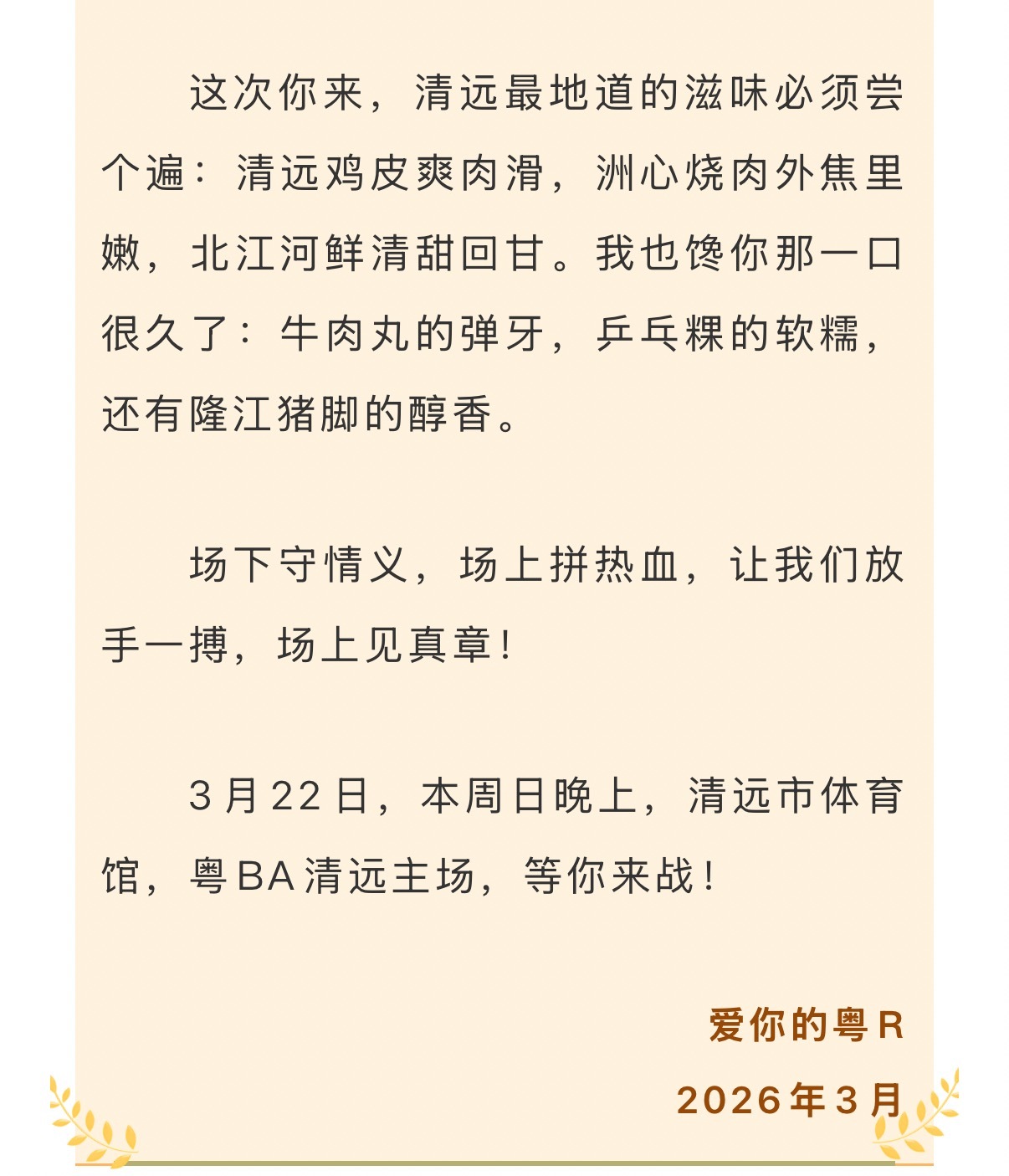 广东人,打球是认真的,造梗是专业的,安利家乡更是走心的。赛前“战书”写到最后,无一例外“上私货”——送攻略、发邀约,“来了就别走”。
