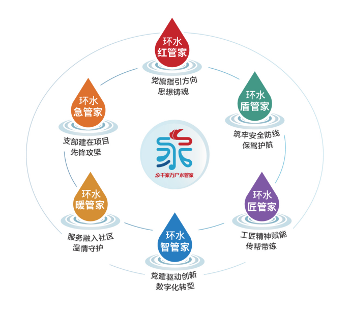 “1”即一个核心主品牌:“千家万户水管家”。这不仅是集团的形象标识,它深刻诠释了国企在保障城市水安全、服务民生需求中的核心定位,将抽象的党建理念具象化为“守护每一滴水、服务每一户人”的庄严承诺。