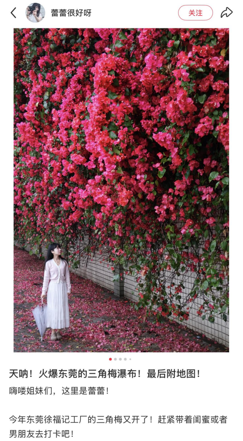 每年3月三角梅盛开的季节,徐福记厂区外一整面三角梅花墙盛放,也成了东莞的网红打卡点。