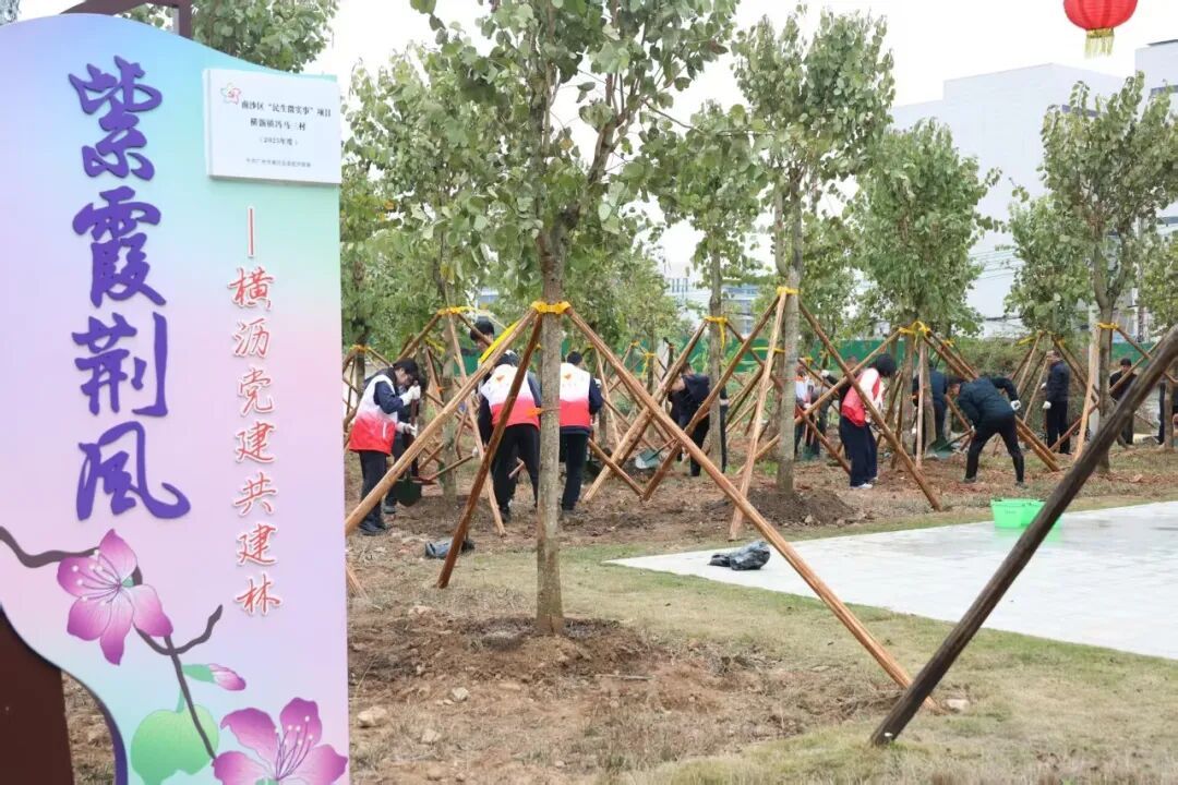 3月10日,横沥镇又添新景——350棵宫粉紫荆正式“入画”“紫霞荆风”党建共建林。微风拂过,新栽的树苗昂然挺立,静待来年春暖花开时,化作一片浪漫粉霞。