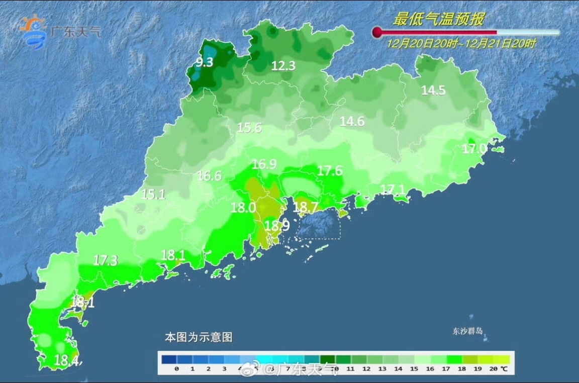 具体来看,20日我省大部多云间晴,局部有小雨。最低气温:粤北大部、肇庆、云浮11℃—15℃,其余市县16℃—20℃。