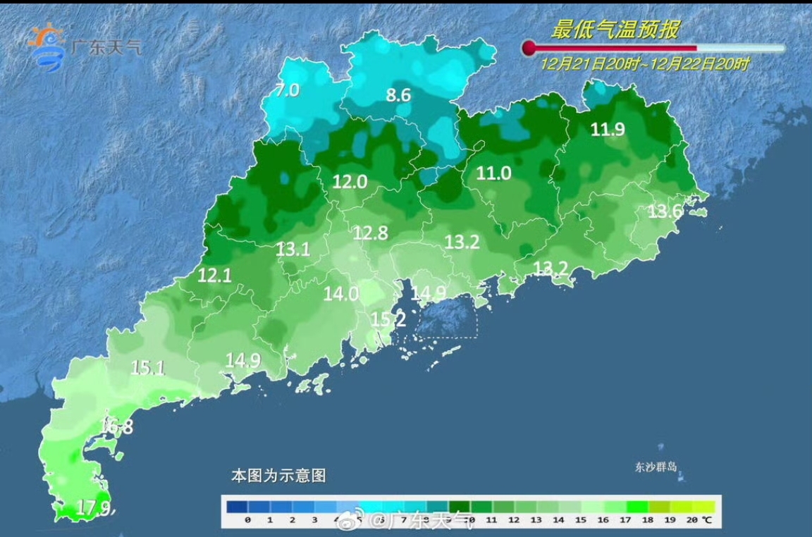 21日我省大部多云间晴,局部有零星小雨。最低气温:韶关、清远北部、河源北部市县7℃—11℃,珠三角中南部和南部沿海市县17℃—20℃,其余市县13℃—16℃。