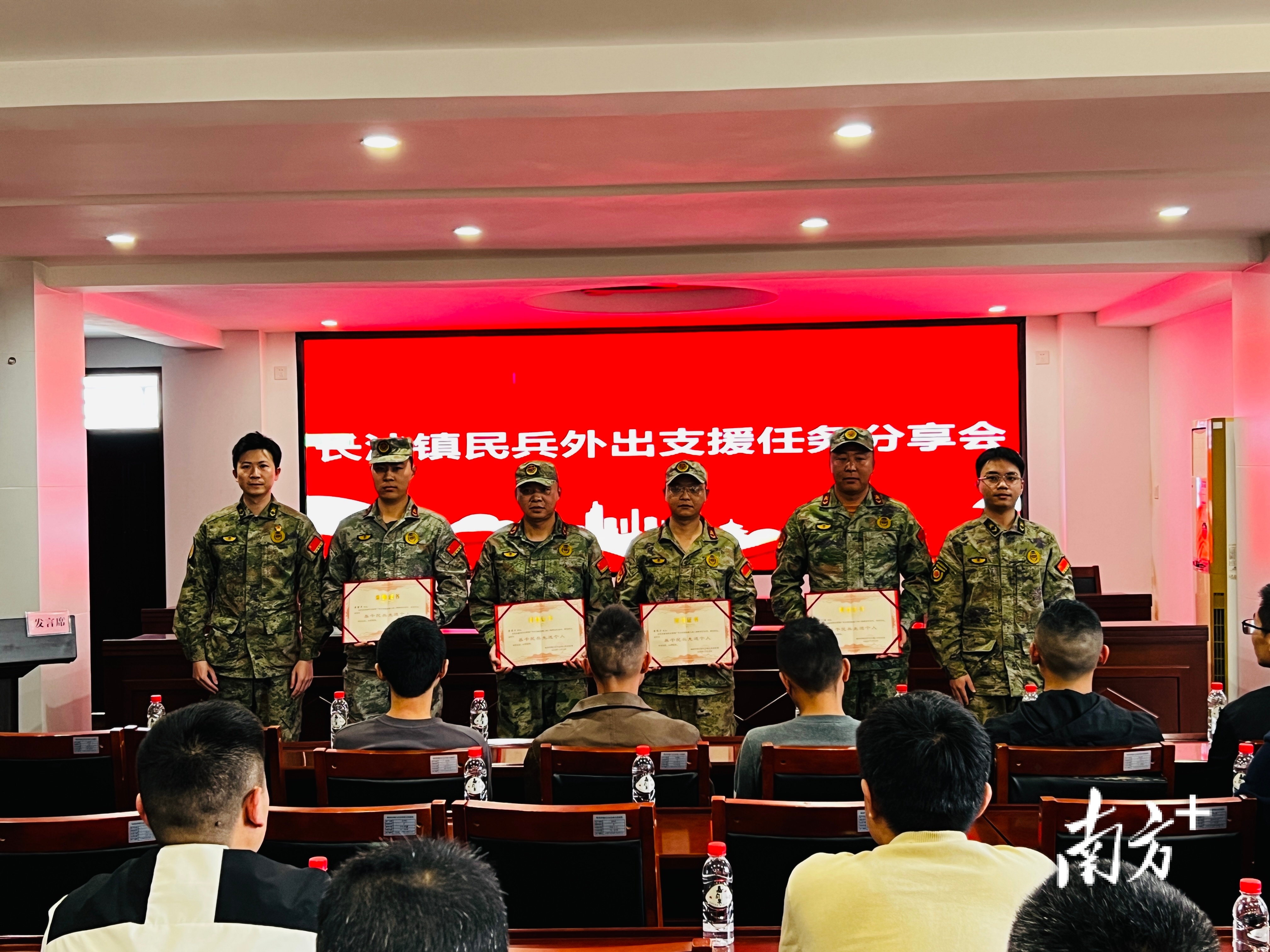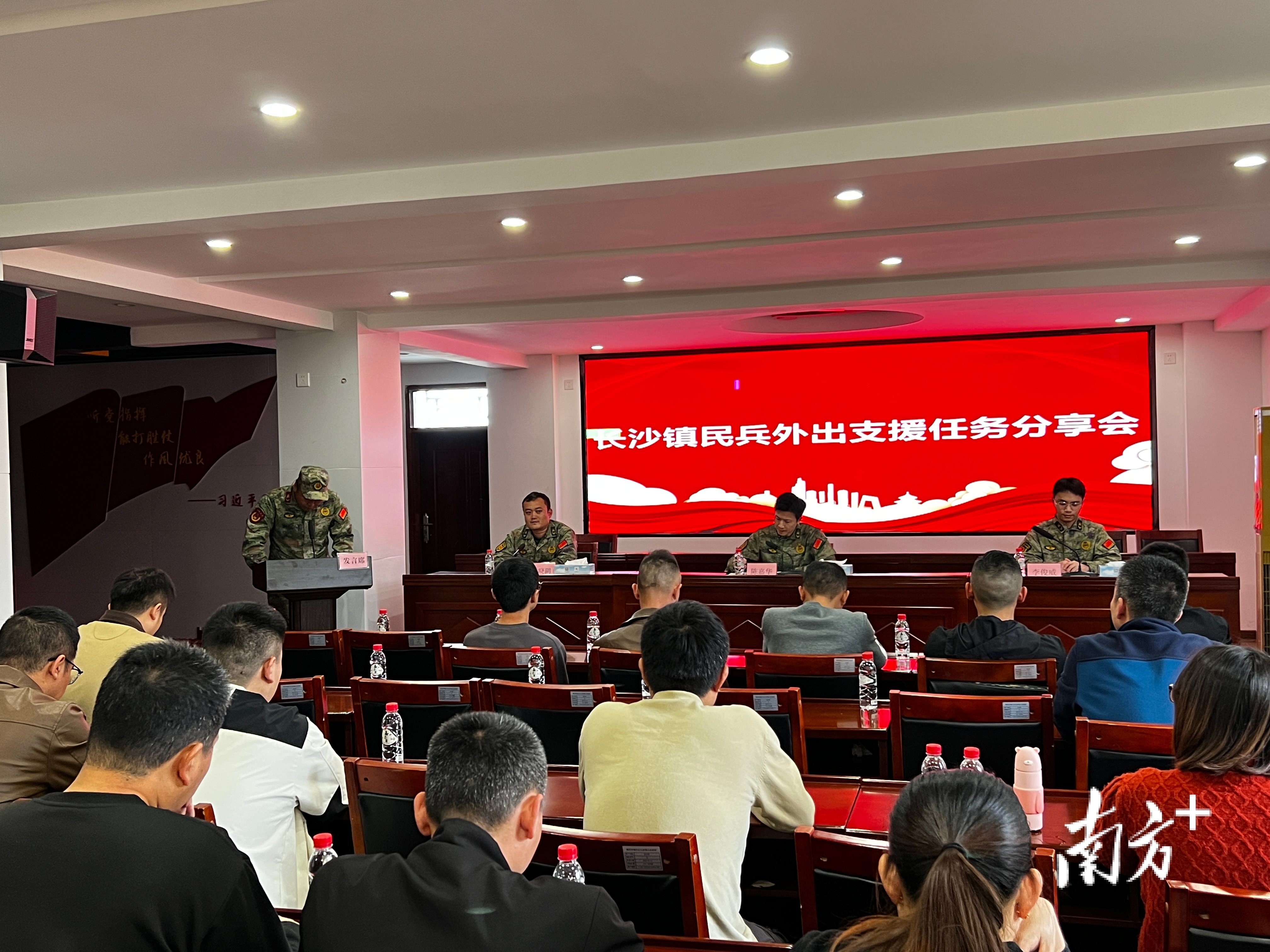 近日,梅江区长沙镇组织召开民兵外出支援任务分享会,旨在挖掘身边典型、弘扬榜样力量,让大家近距离感受民兵队伍在国防建设、应急处突、服务群众中的责任与担当,重点对刚刚参加支援湛江环北部湾广东水资源配置工程建设任务中表现突出的刘广强、李用方等4名同志进行表彰,鼓舞军心士气,激发昂扬斗志,推动年度民兵工作高质量落实。