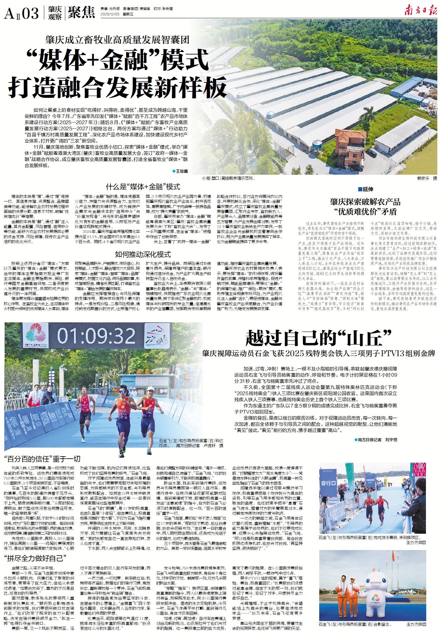 肇庆视障运动员石金飞获2025残特奧会铁人三项男子PTVI3组别金牌