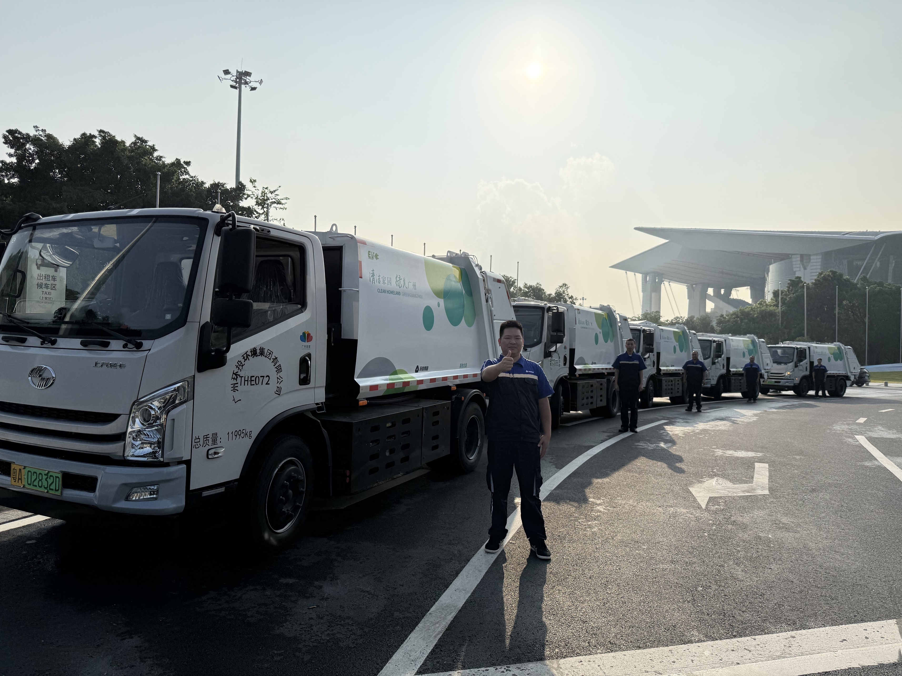 此外,为了给群众提供更低碳、环保的观赛体验,赛事主力清运车辆全部采用纯电动12吨压缩式垃圾车。该产品零排放、低噪音,能够实时回传位置、载重、电量等数据,并在车辆尾端搭载了防滴漏装置与300升的污水收集箱,较好地解决了行车运输垃圾过程中的跑、冒、滴、漏问题,以高效、绿色、洁净、环保的理念保障赛事周边的高标准维护。