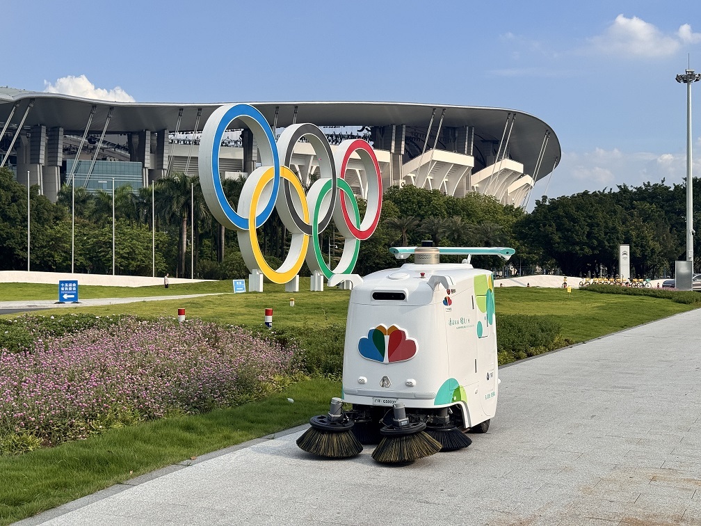 在广东奥林匹克体育中心,科技感十足的环卫服务成为一道别样风景。