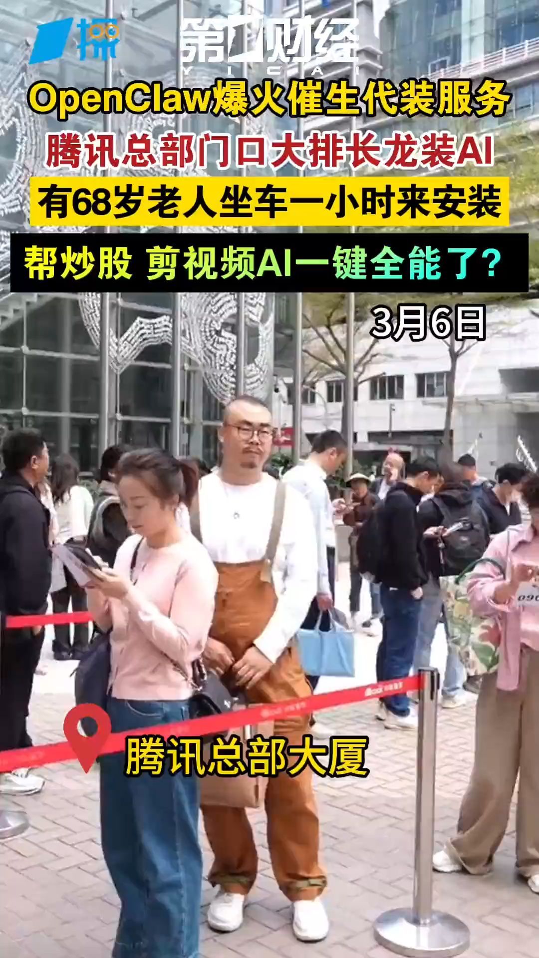 腾讯总部门口大排长龙装“龙虾”,有68岁老人坐车一小时来安装