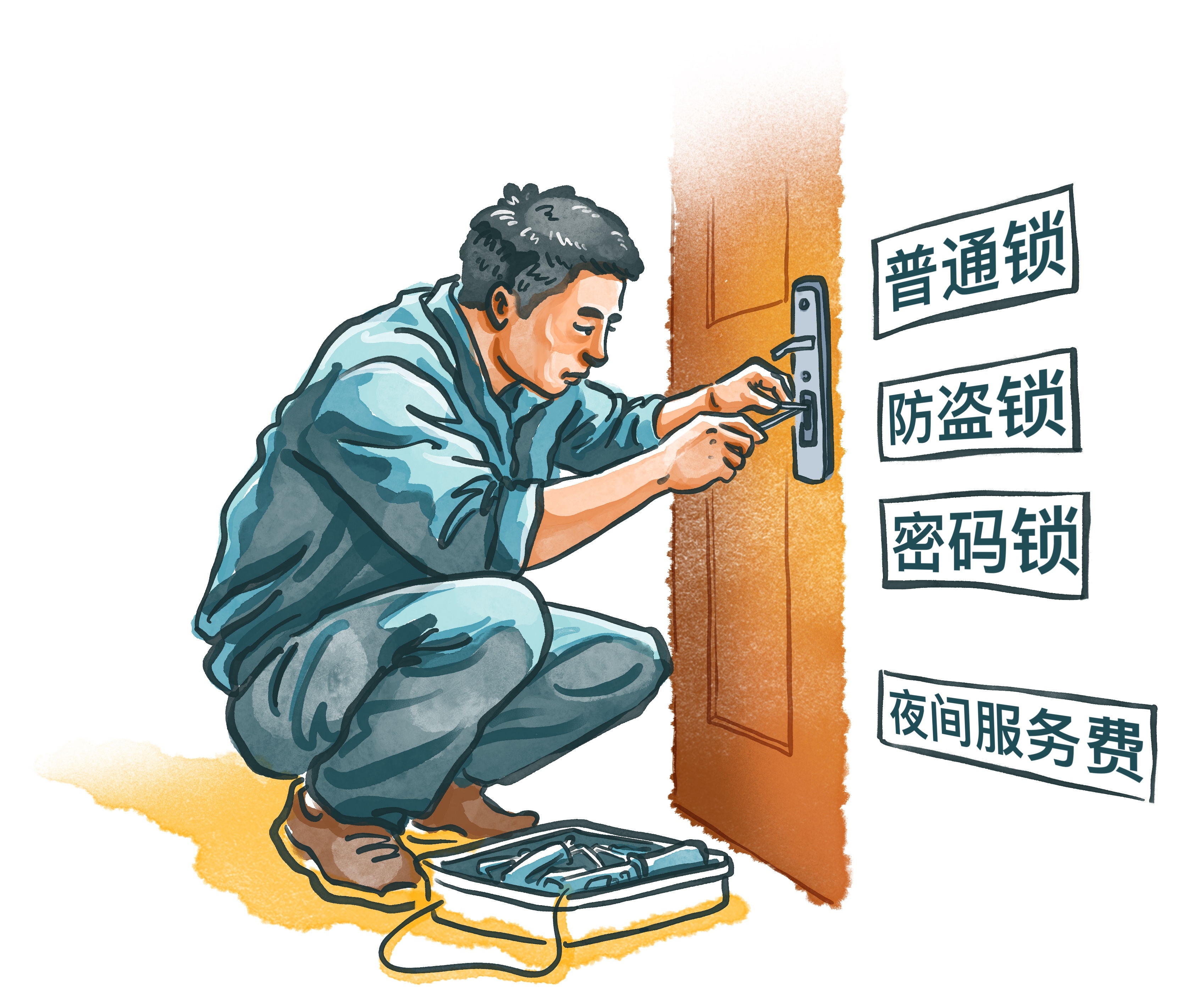 “平台上显示这家店的各项上门开锁费用是25元,其他各项上门维修服务的费用也是在20元到50元之间,虽然商家说具体收费情况要看师傅实际操作,不需要线上下单,我们也没有觉得价格会高到哪里去。”丹丹和室友加班回到家又累又困,一心盼着开锁师傅早点上门。