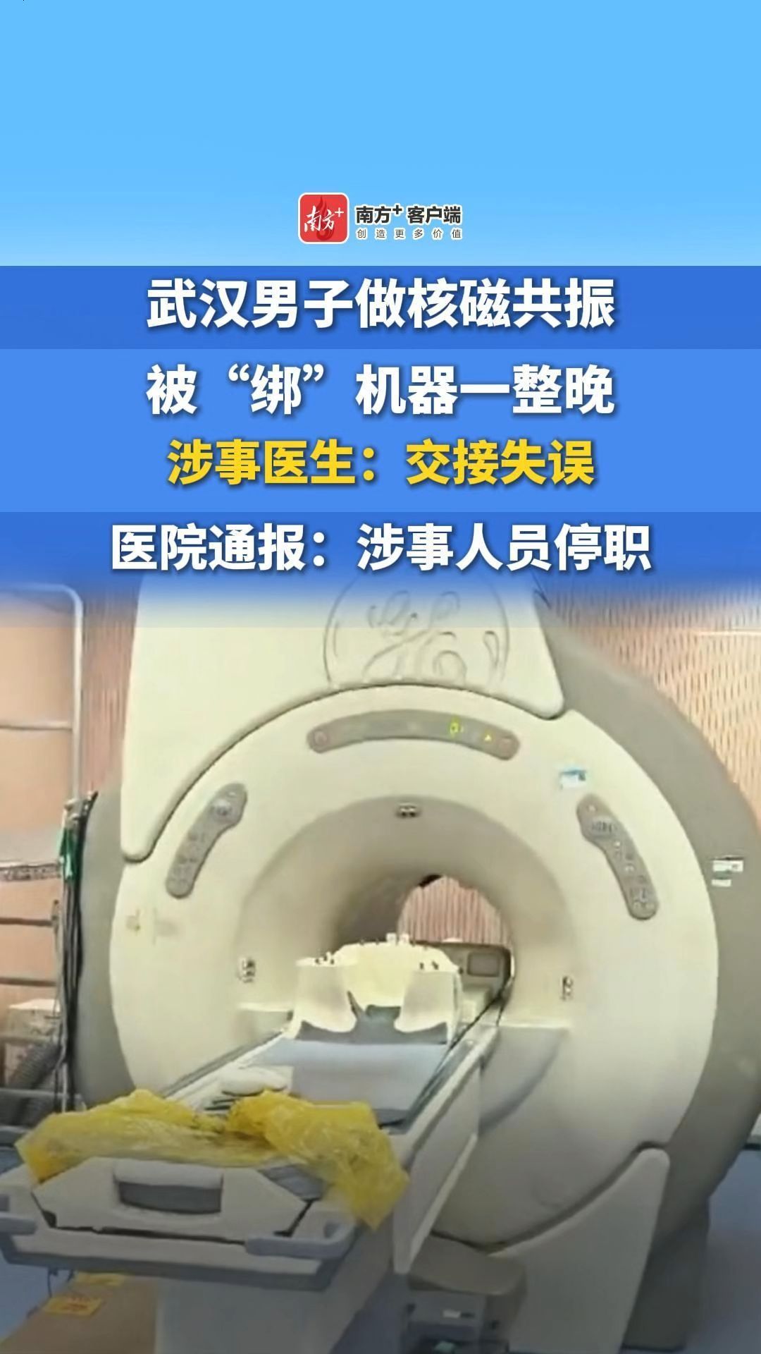 武汉男子做核磁共振被“绑”机器一整晚 涉事医生:交接失误 医院通报:涉事人员停职