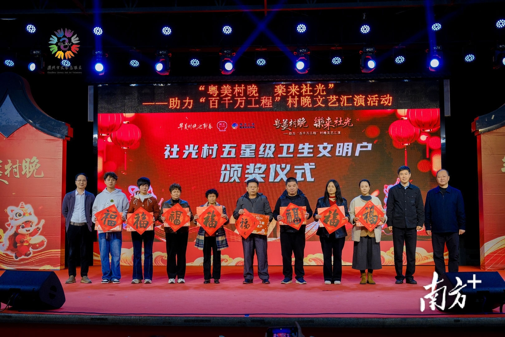 “粤美村晚”不仅是文化的盛宴,更是基层善治展示的平台。潮州社光村,五星级卫生文明户获得表彰,并获赠书法家手写福字帖。