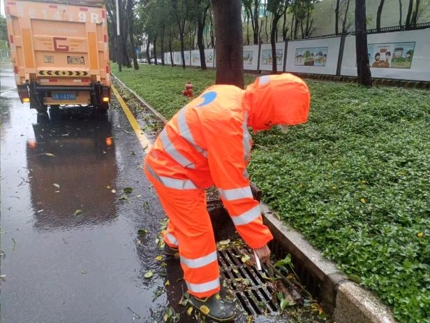 针对台风可能引发的树叶垃圾堵塞等问题,出动28组次管网保障单元(80人次、28车次),抽升能力17090m³/h,对26处关键点及周边管网开展清疏巡查,及时清理阻水杂物,确保排水“血脉”通畅。