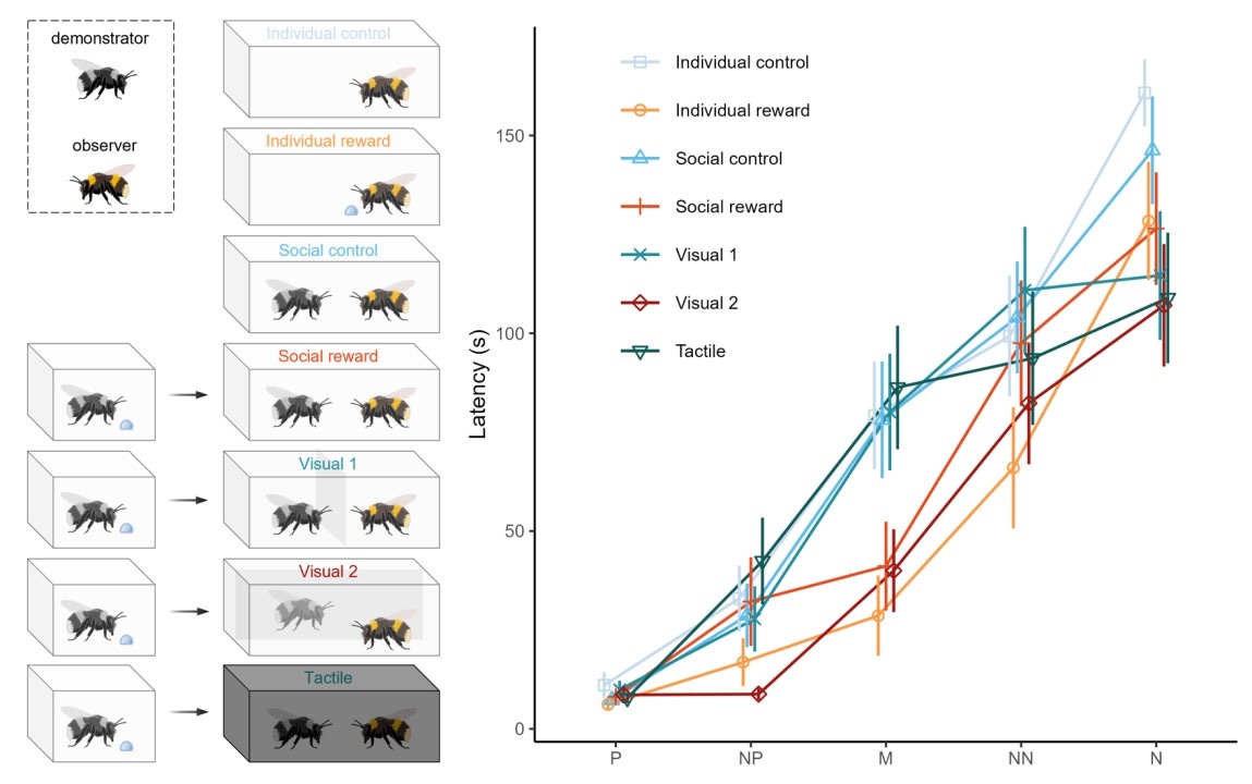 快乐是会传染的,这一句话不仅适用于人类,也可适用于大黄蜂群体。当一只熊蜂目睹同伴因获得糖水奖励而表现出“积极情绪”时,它自身的行为决策也随之变得更加“乐观”。这种原本被认为只存在于高等动物中的社会情绪能力,原来早已存在于无脊椎动物群体中。