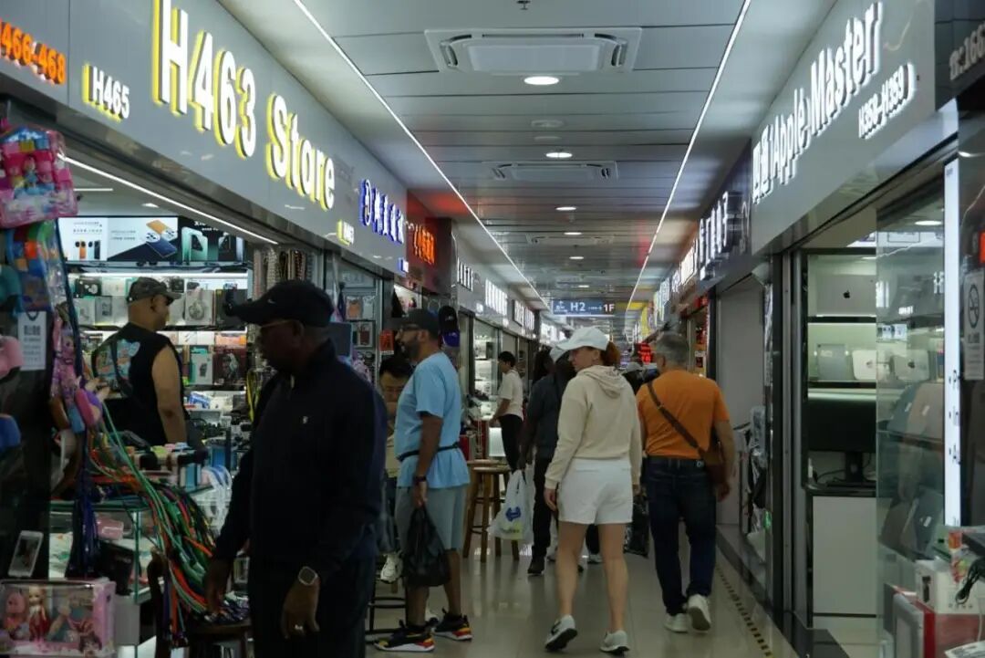 据许印回忆,自上世纪末公交海印营业起,这里的外国消费者就不少。那时候互联网和信息技术不发达,但凭着“口口相传”,不少因广交会或贸易需求到访广州的外国人都知道有这样一个地方可以采购电子产品。大部分外国消费者以批发为主,成为衔接中国市场与当地市场的“桥梁”。当时的国内消费者也不少,中外顾客比例相差不大。