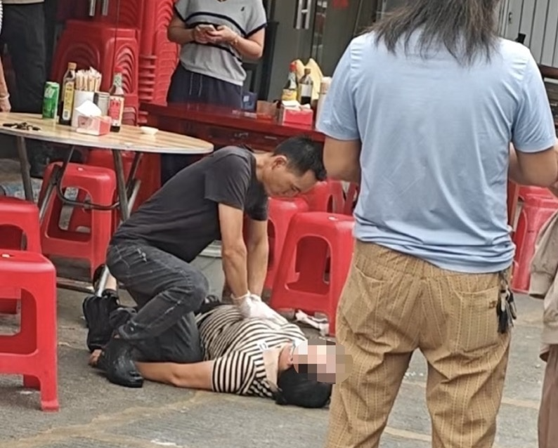 近日,深汕一家小吃店内上演生死救援:一位女食客就餐时突然昏倒,呼吸骤停。