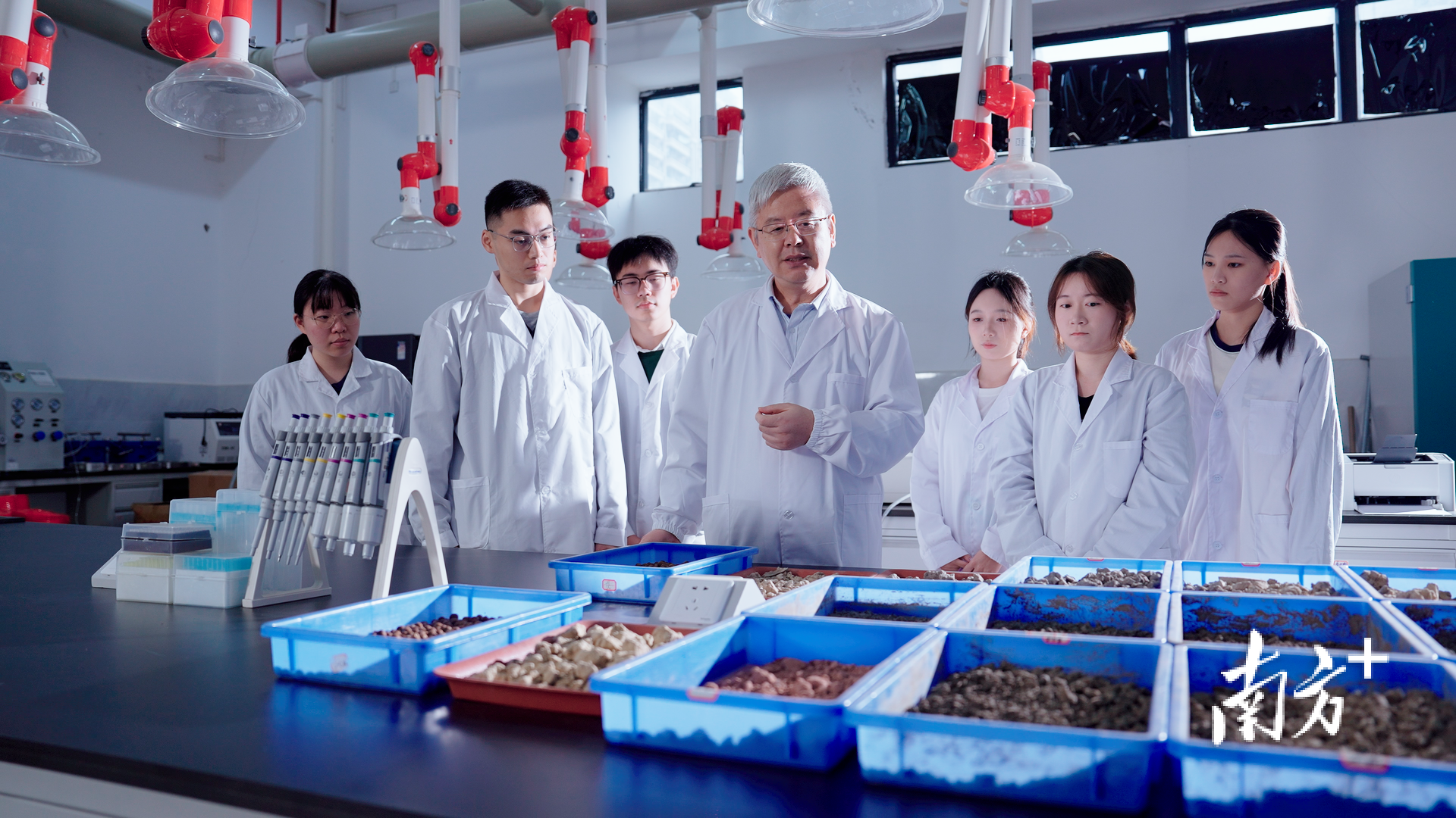 师生在广东省城郊生态环境与低碳农业重点实验室上课。