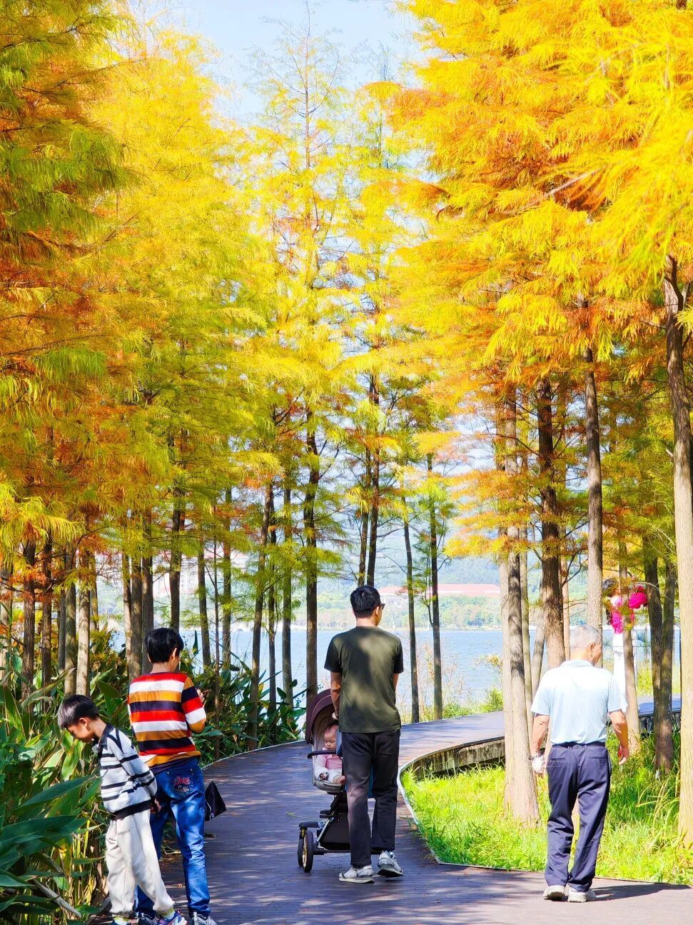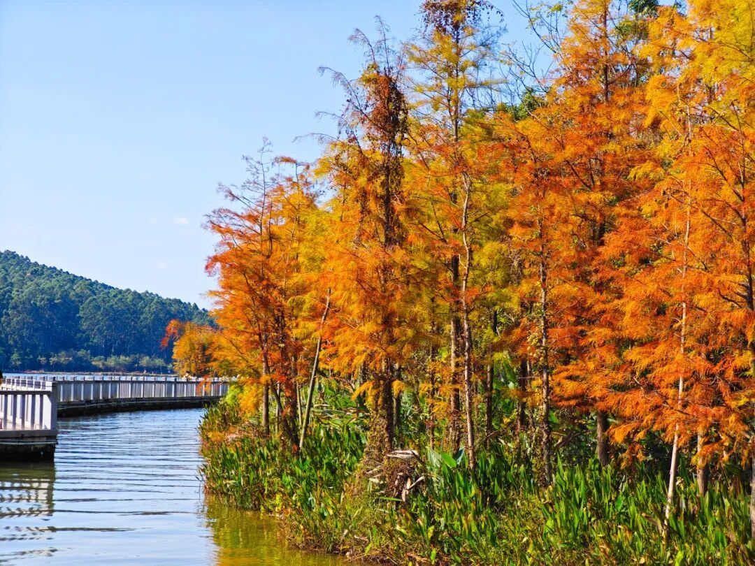 右侧便是此刻正当主角的落羽杉林