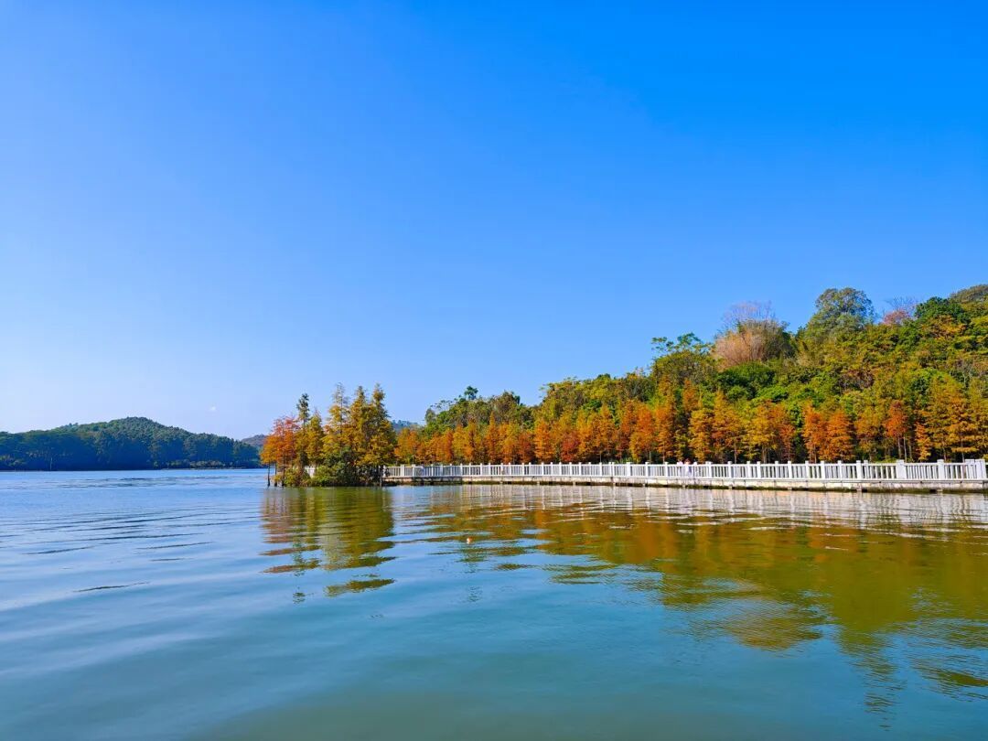 左侧是开阔平静的荔湖水面