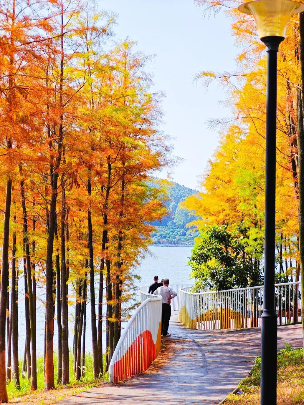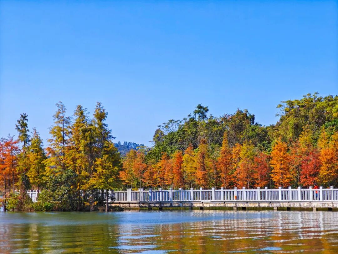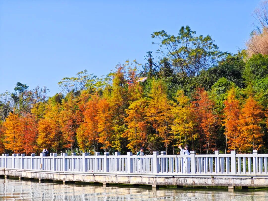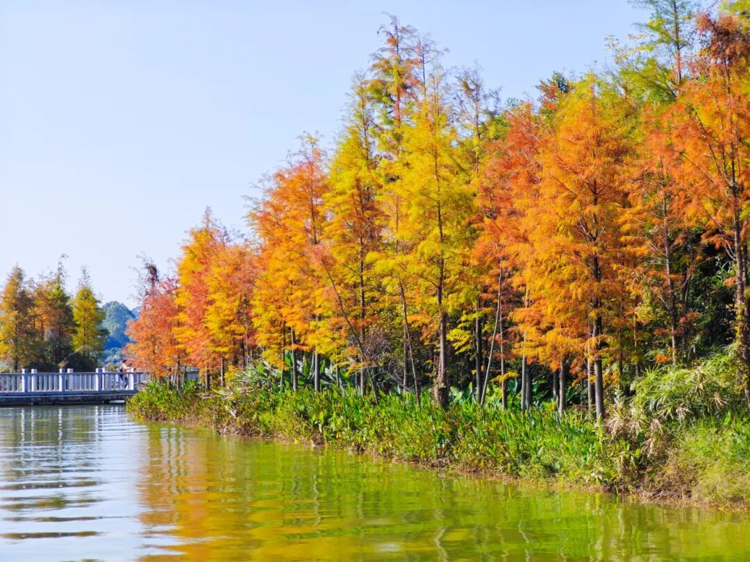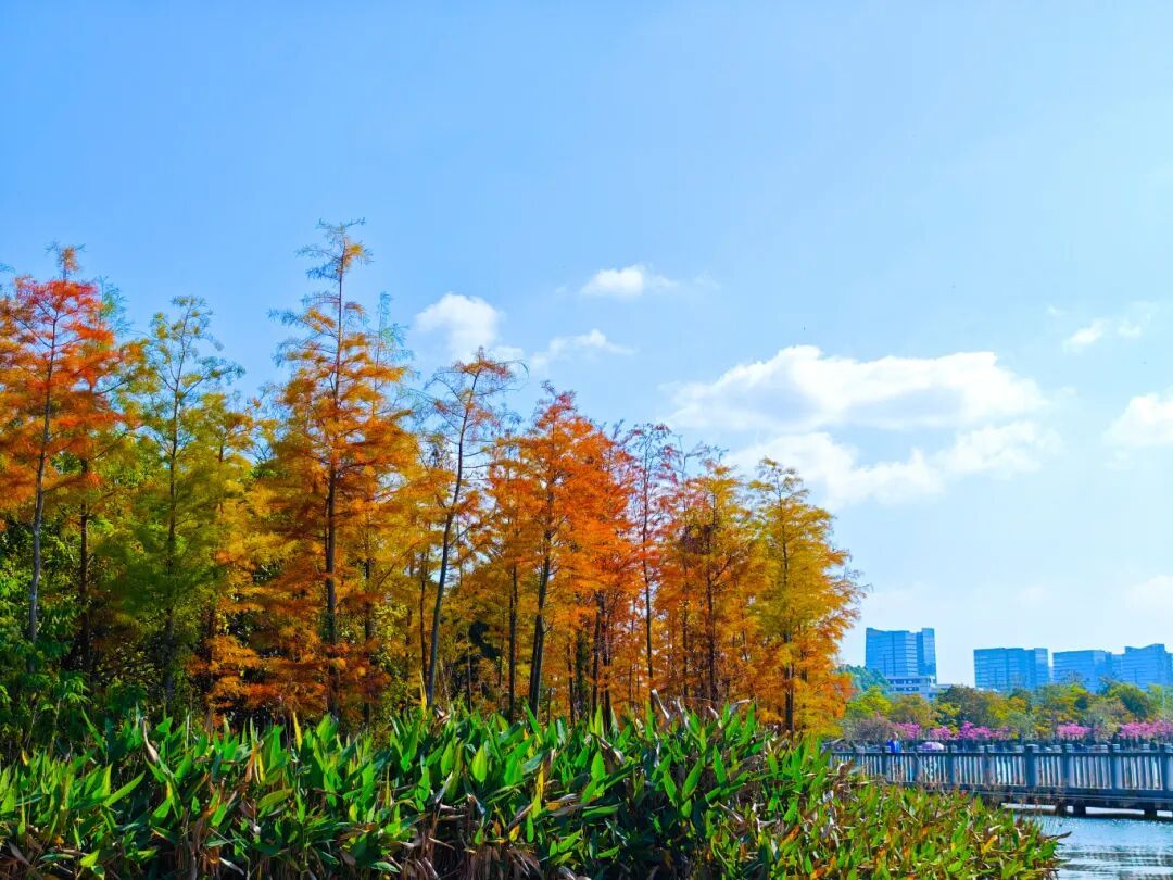 公园里的落羽杉红了!