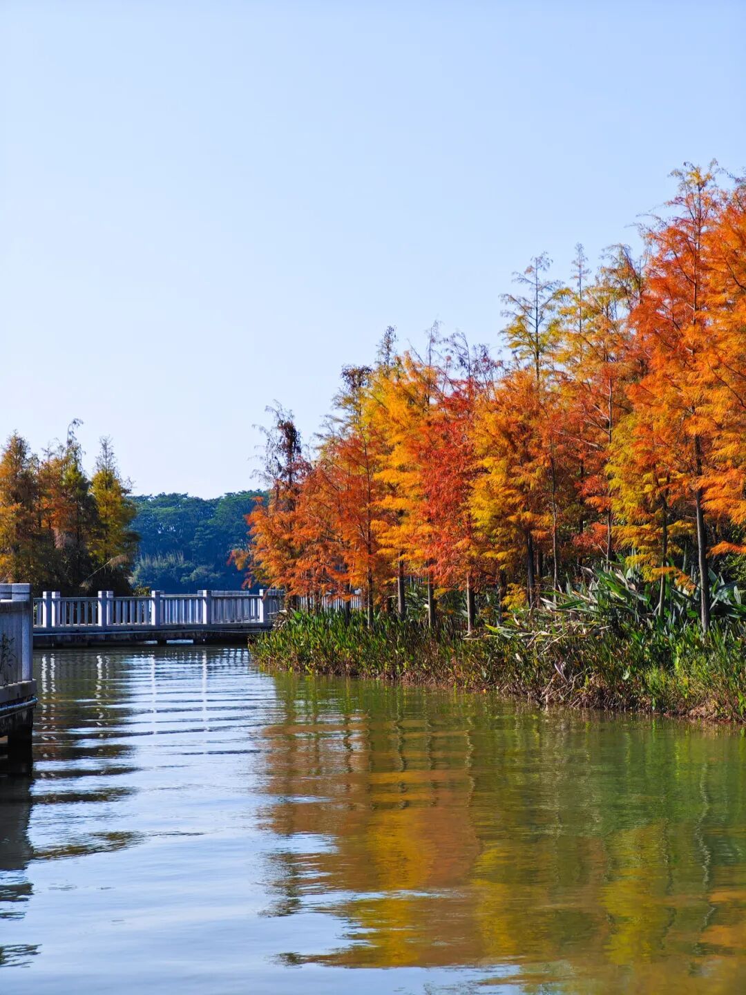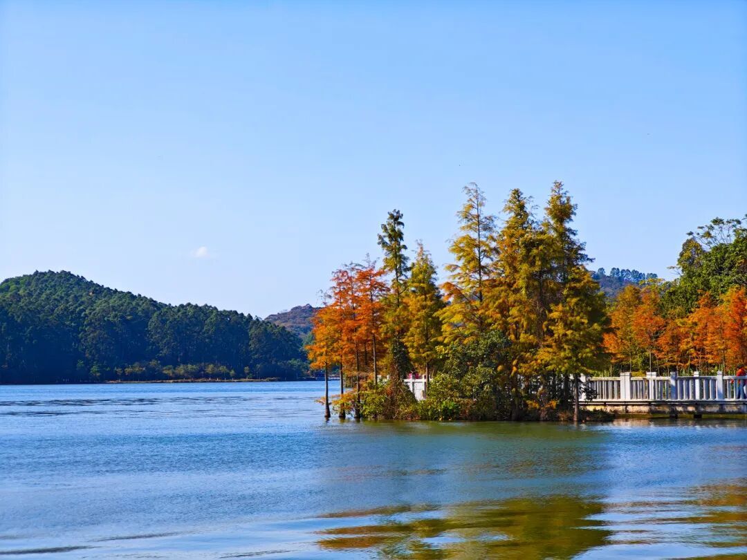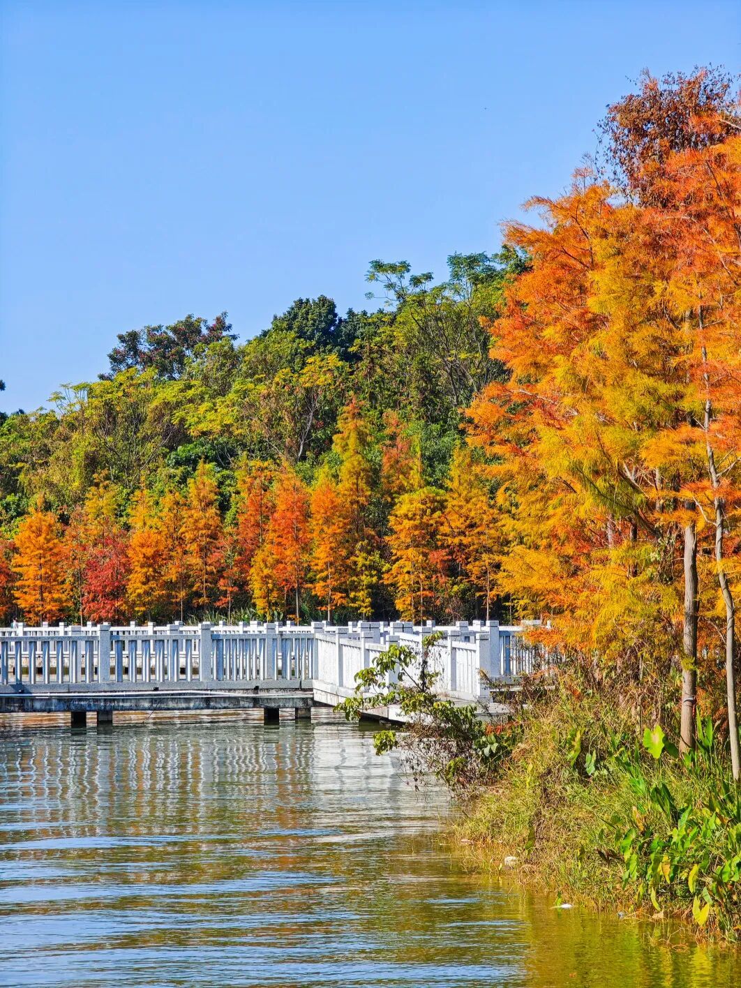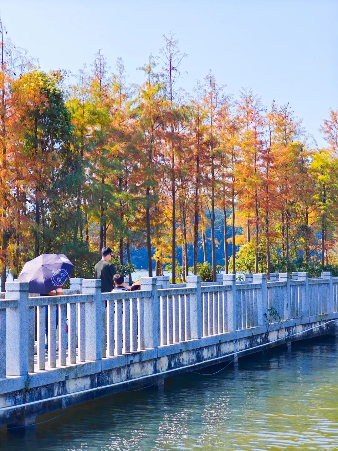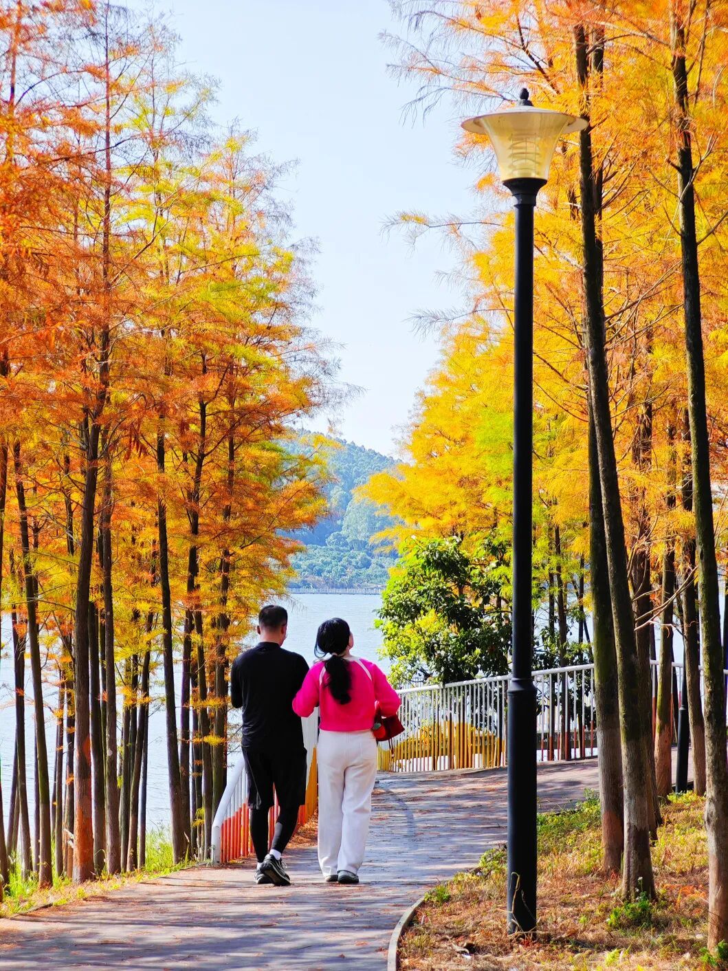 公园里的落羽杉红了!