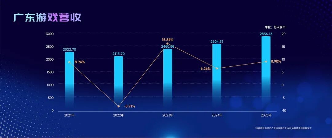 这是广东在电竞产业上游游戏研发领域统治力的直观体现。而从强劲增长的游戏出海市场看,广东自研游戏海外收入已突破423.6亿元,“全国每10元中,就有4元来自广东”。