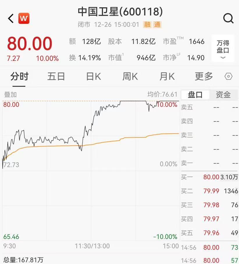 盘面上,商业航天概念午后再度走强,中国卫星走出3连板,股价续创10年新高,总市值946亿元;北斗星通、中国卫通、通宇通讯、隆基机械、上海港湾等10余股涨停。