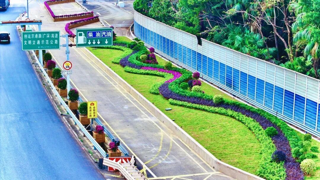 作为粤港澳大湾区重要交通枢纽,广深高速在皇岗收费站广场到加油站开展景观带提质升级工程,打造成兼具生态颜值、观赏价值与人文温度的景观长廊。