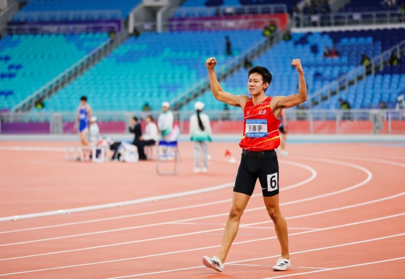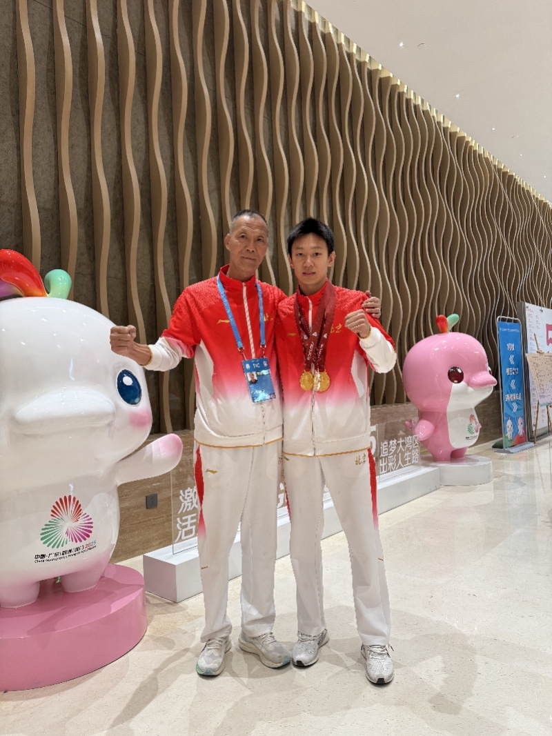 “2022年我在打工,2023年收到通知恢复训练。”这一年,徐娟建议他从跆拳道转向田径。张萌宇自己也对田径感兴趣,于是向队里领导沟通,队里给了他三个月试训的时间。“教练说看好我,后来就转正了。”自此,他和女友一起开始努力训练田径项目。