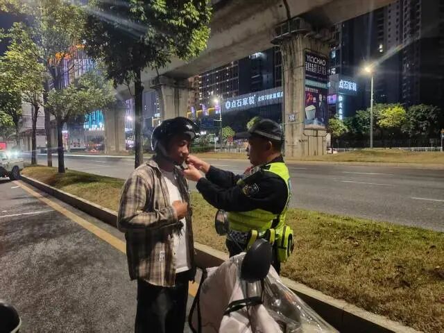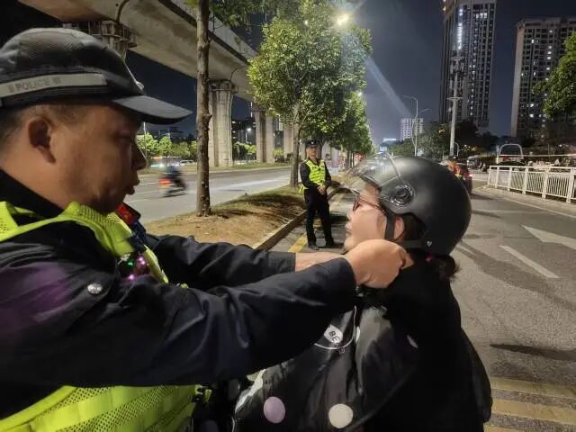 行动中,执勤民警设立检查点,对经过的摩托车及电动自行车进行了细致的排查。对于那些未戴安全头盔的驾驶人,民警采取了“处罚与宣传相结合”的方式,向他们耐心阐述头盔保护的重要性,指出在意外发生时头盔能有效防护头部,减少严重伤害乃至致命风险。随后,民警向他们赠送新头盔,并演示了正确的佩戴方法。