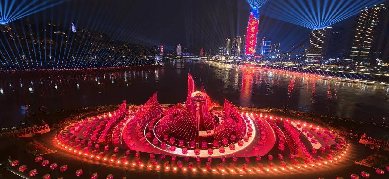 在四川宜宾分会场,1400平方米的AR系列地砖屏幕铺展在三江六岸。