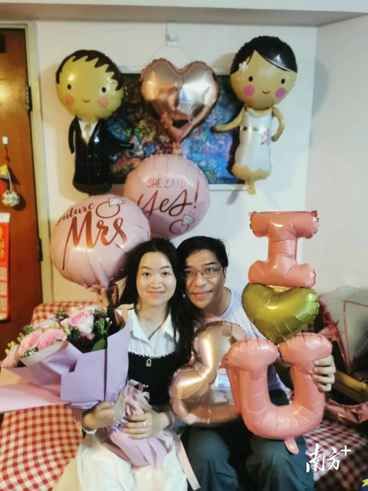 而刘振华也早早地在深圳湾口岸香港一侧等候着爱人。当谢晓家的身影真真切切出现在眼前时,刘振华紧紧地抱住了她。当天晚上,在家人的见证下,手捧鲜花和戒指的刘振华单膝下跪,向谢晓家正式求婚。那一声坚定的“我愿意”,圆满了这一段曲折的恋爱史,也开启了下一段幸福的家庭生活。