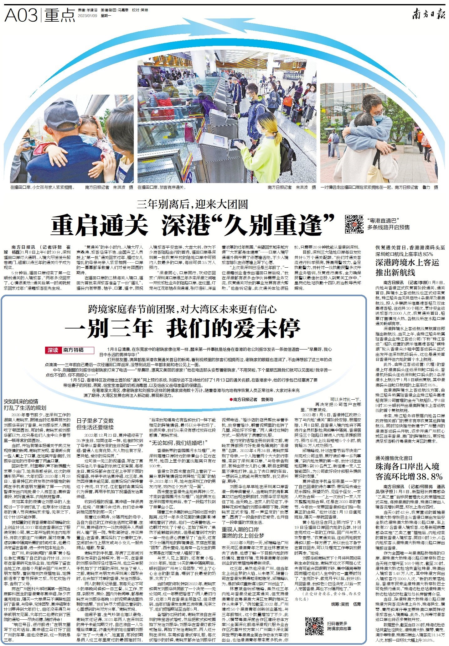 在粤港澳大湾区,像谢晓家和刘振华这样的跨境家庭有数十万计。随着香港与内地有序恢复人员正常往来,大家对未来充满了期待,大湾区发展也将注入新动能,展现新活力。