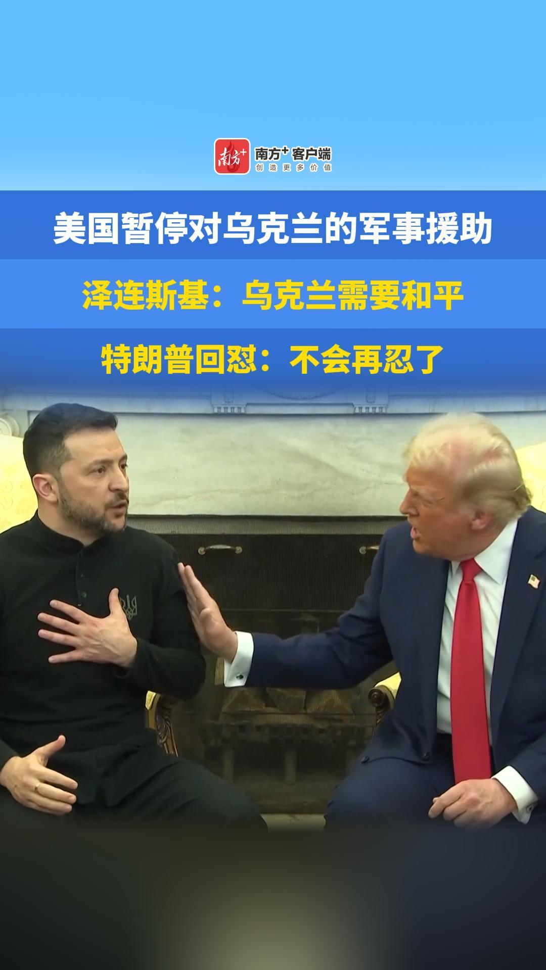美国暂停对乌克兰的军事援助,泽连斯基:乌克兰需要和平,特朗普回怼:不会再忍了