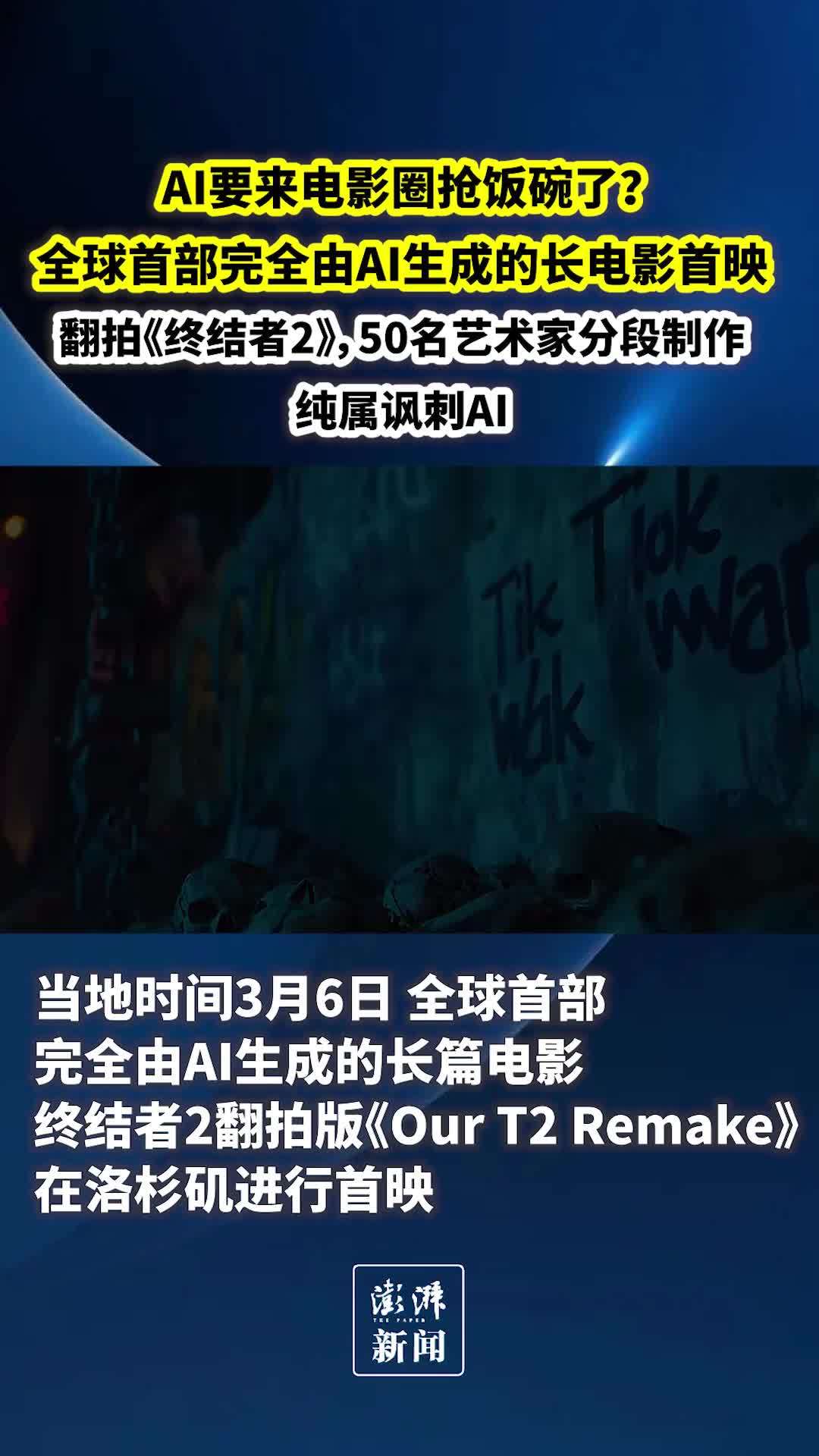 当地时间3月6日,全球首部完全由AI生成的长篇电影终结者2翻拍版《Our T2 Remake》在洛杉矶进行首映。影片由50名AI艺术家历时3个月分段创作。详情>>