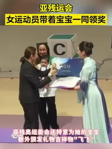 伊朗“手枪女王”萨雷赫·贾万马尔迪带着3个月大的宝宝一起上台领奖,嘉宾将银牌套在宝宝身前,还特地送上“吉祥物”飞飞。温馨一幕,萌翻全场。